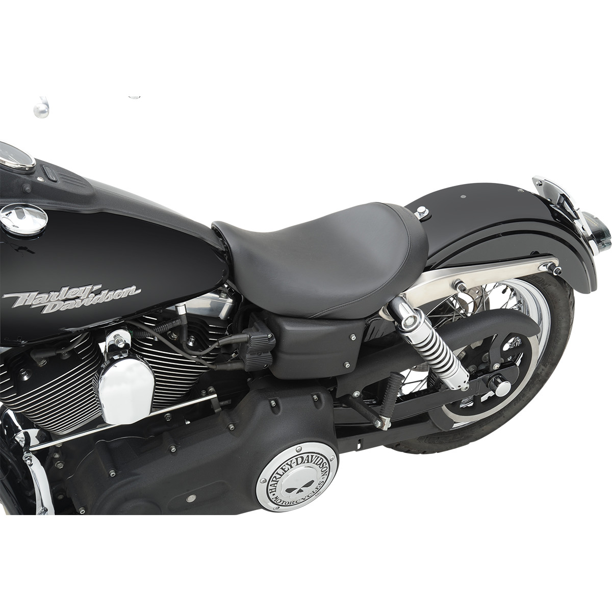 Really low to create a stylish saddle so thin it barely covers the bike's battery The perfect seat choice for the rider alone, no passenger pillion The sculpting of the seat not only creates a smart style, but it gives riders a short leg reach to the ground for confident stops Choose either a leather-grain SaddleHyde™ seat cover or the new WP-Suede cover for a rich, custom look Both cover types offer excellent comfort with a classic feel and are weather-resistant for low-maintenance ownership The progressive density foam with a top layer of SaddleGel™ offers a surprising amount of supportive comfort for a slammed solo seat Gel-coated, marine grade fiberglass pans and chrome brackets make sure the seat is durable for decades of riding Easy to install, just like the bike's original seat; includes additional mounting hardware as needed Designed and made in the U.S.A.