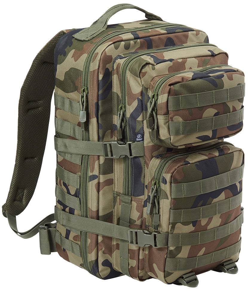 Reppu Brandit Woodland Large US Cooper. Mahtava tilaihme ! Repussa paljon erilaisia ripustuslenkkejä ja yksityiskohtia. Oikea väri näkyy aloituskuvassa, muut kuvat ovat lähinnä selventämässä repun sisärakenteita. Selkäosa topattu, samoin olkahihnat, joten käyttömukavuus on kohdallaan. Selkäosassa repun ulkopuolella on lisäksi iso tarrakiinnitteinen taskulokero. Repun isoin lokero-osa (varsinainen reppuosa) aukeaa kokonaan kaksisuuntaisella vetoketjulla, joten pakkaaminen ja repun käyttö helpottuu. Isoimmassa reppulokerossa on toisella puolella iso vetoketjutasku ja toisella puolella on verkkokangas, jonka avulla laukun sisällön saa mukavasti järjestettyä. Repun muissakin lokeroissa on monessa sisällä vielä erillisiä taskulokeroita, joten sisällön organisointi onnistuu hyvin, kunhan muistaa minne minkäkin on laittanut. Kuvista hahmottaa ehkä vielä paremmin. Repun isoimman lokeron korkeus sisäpuolelta on 49 cm, leveys 30 cm ja syvyyssuunnassa isoimpaan lokeroon mahtuu 13 cm:n verran tavaraa. Laukun ulkomitat: korkeus 50 cm, leveys 30 cm ja koko repun syvyys (paksuus) kaikkine taskuineen on 32 cm. Tilavuus 40 litraa. Materiaali 100 % polyester.