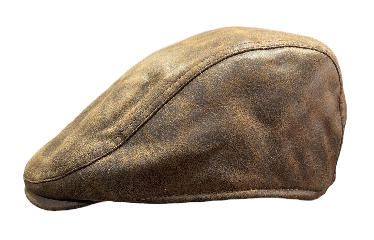 Hattu, Ruskea lätsä. Antiikkinahan näköinen materiaali, 100 % PU. Flanellimainen lämmin vuori. One size, yksi koko sopii useimmille. Lätsän takareunassa on kuminauhakiristys, joka mahdollistaa sopivuuden erikokoisille.