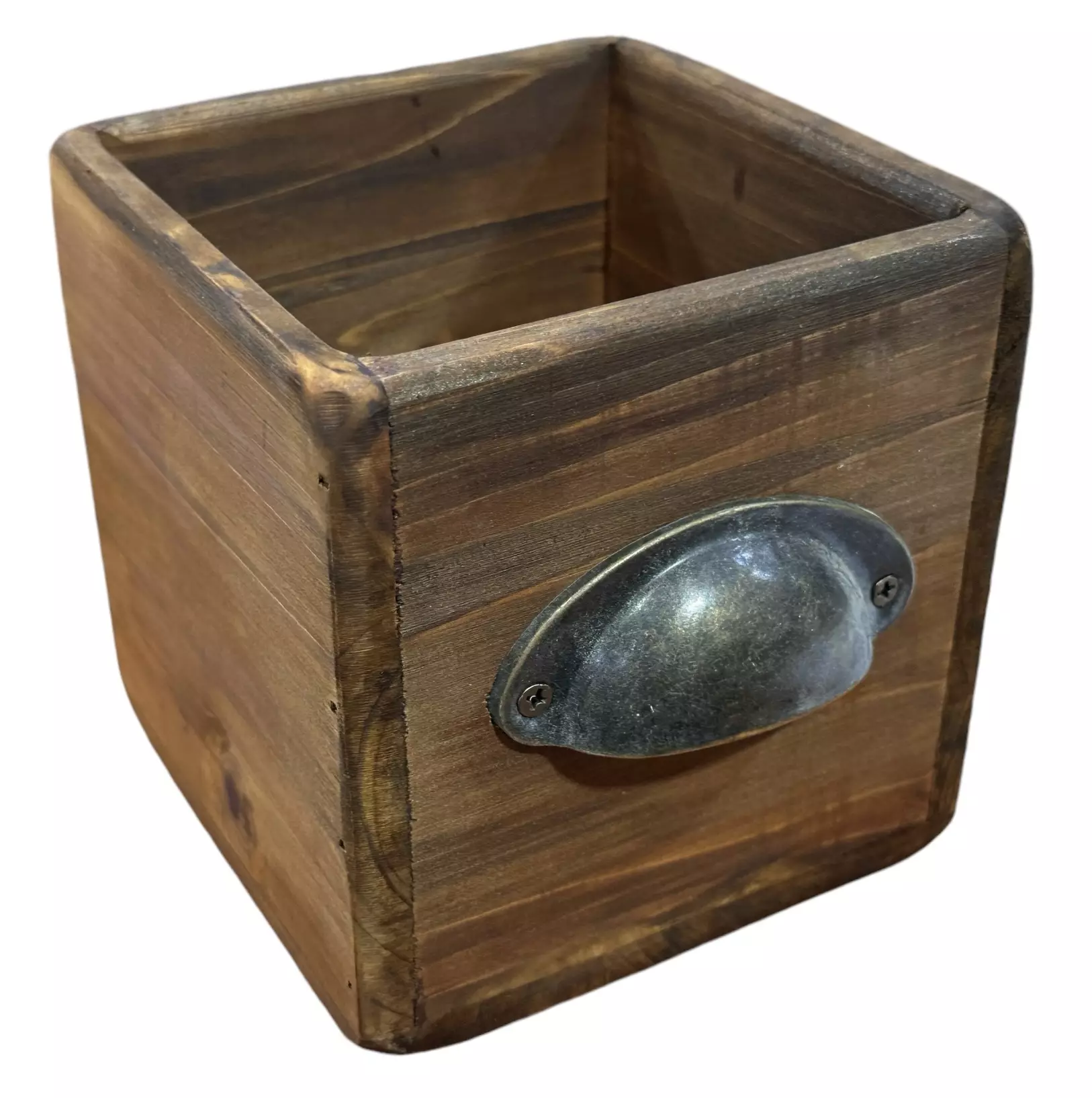 Säilytyslaatikko 13x13x13cm. Kaunis pieni puulaatikko metallikahvoilla.