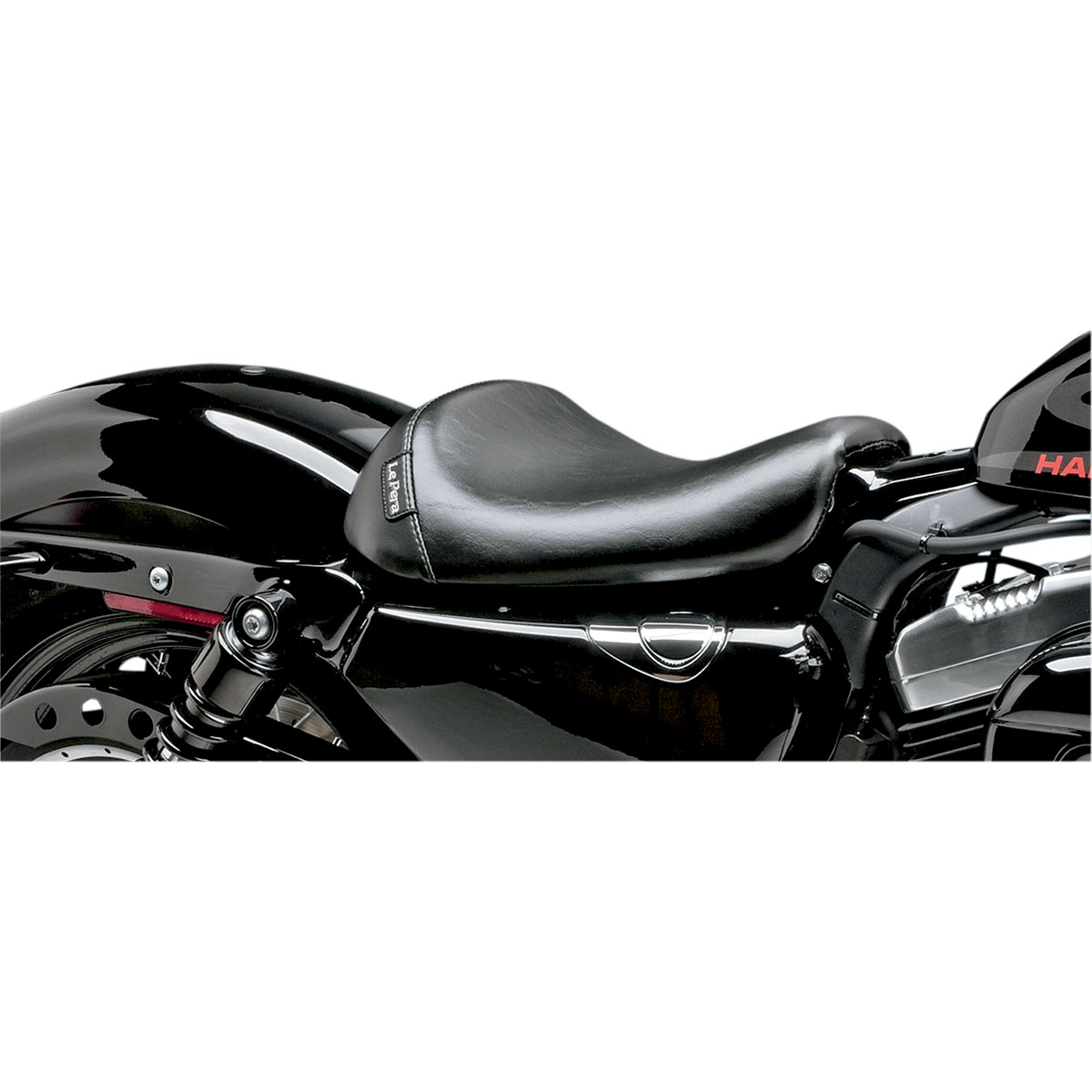 Simplistic style brings out the true expression of your custom or stock bike Top-grade black vinyl cover in your choice of a smooth or carbon fiber design Base plate is powder-coated steel and carpeted to protect painted surfaces Pillion pad sold separately Made in the U.S.A.