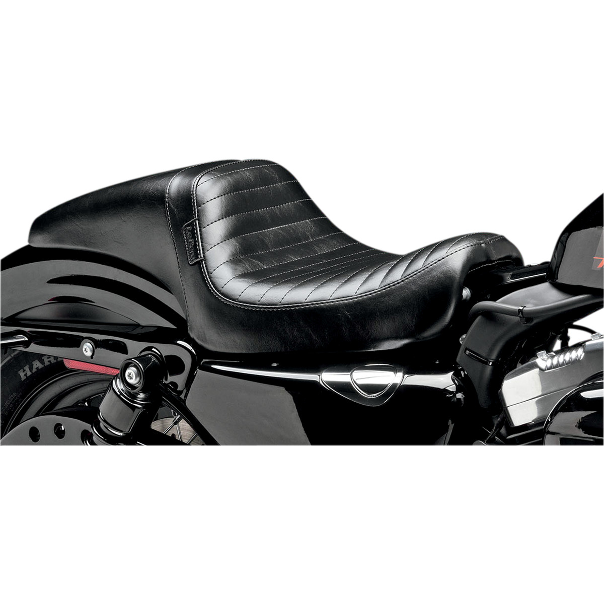 Low, sleek style retains back support for maximum rider comfort Molded one-piece foam foundation covered with premium-grade black vinyl Seat base plate is 16-gauge powder-coated steel Carpeted seat bottom protects the fender Made in the U.S.A.