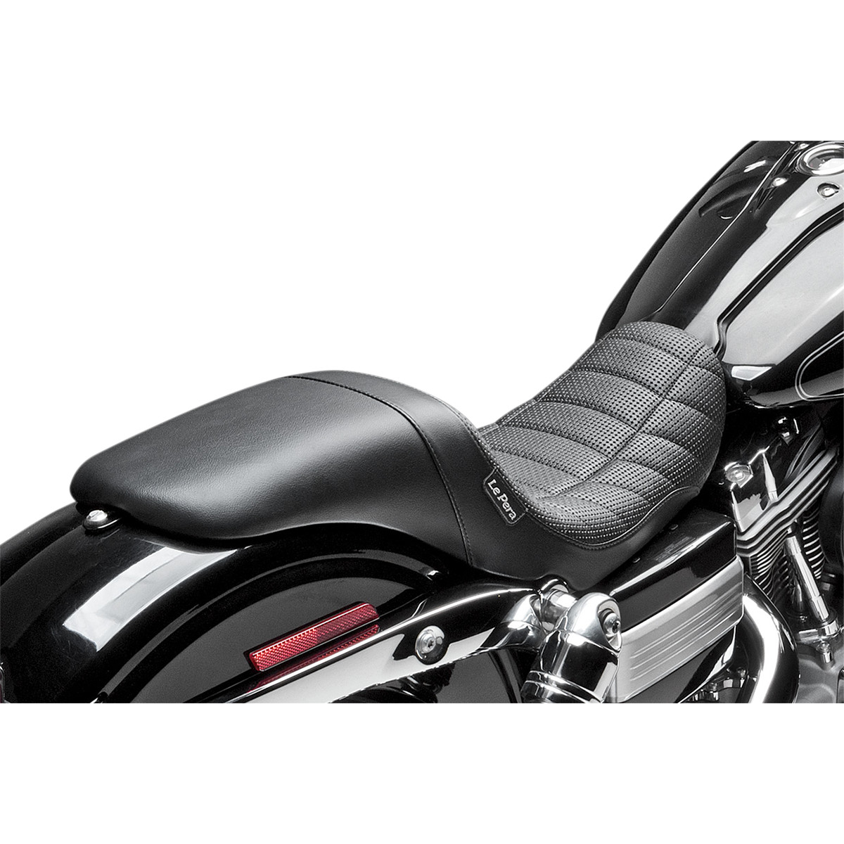 Low, sleek style that retains back support for maximum rider comfort Molded one-piece foam foundation covered with premium-grade black vinyl in a smooth design 16-gauge powder-coated steel base plate Seat bottom carpeted to protect the fender Made in the U.S.A.