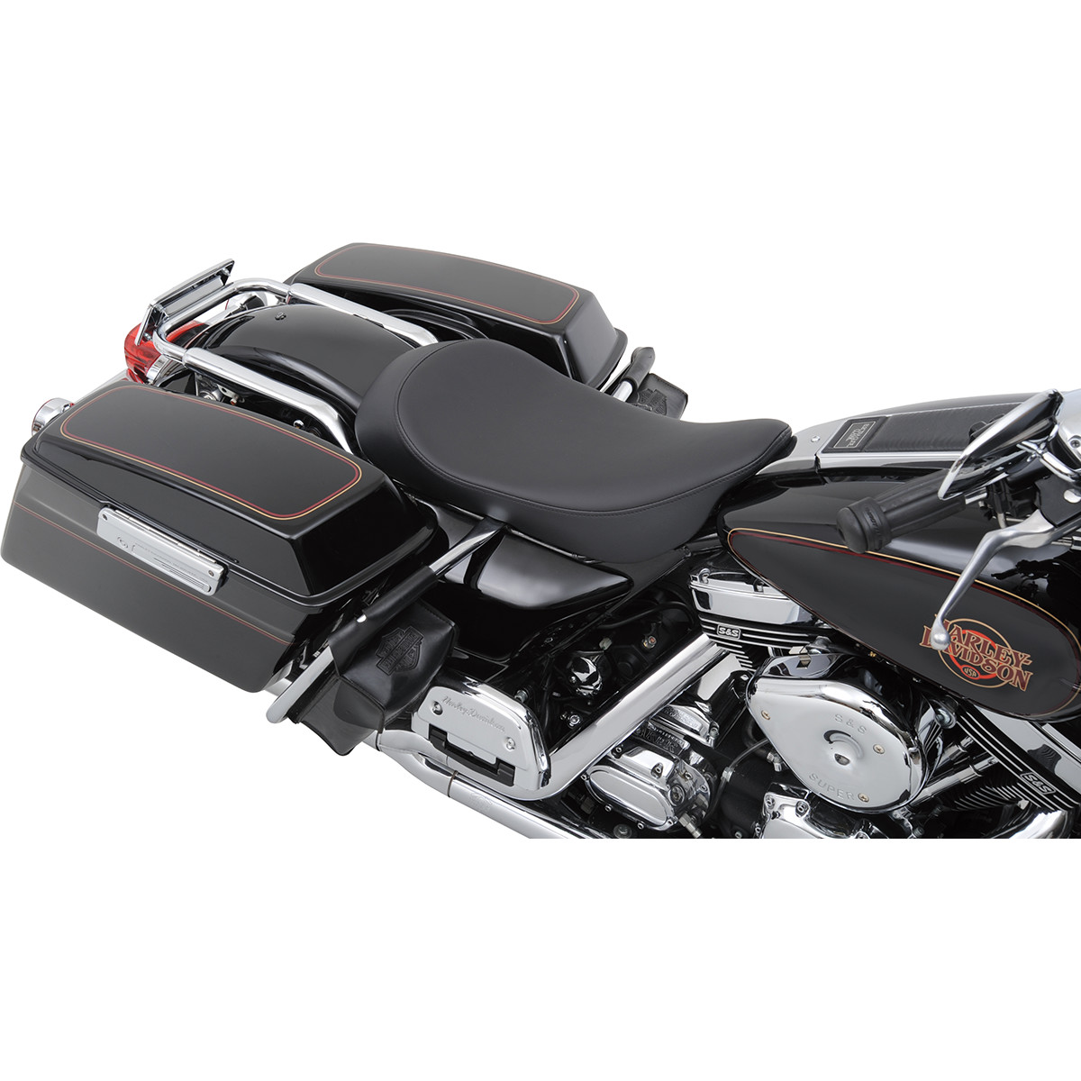 Solar-reflective leather in the seating area; patented process reduces surface temperature by as much as 25°F for a cooler seat, higher durability and longer life over conventional leather or vinyl Flexible urethane foam for maximum comfort 3/16" ABS thermoformed seat base with carpeted bottom to protect paint Lower position creates better rider position with improved styling Include mounting hardware Made in the U.S.A.