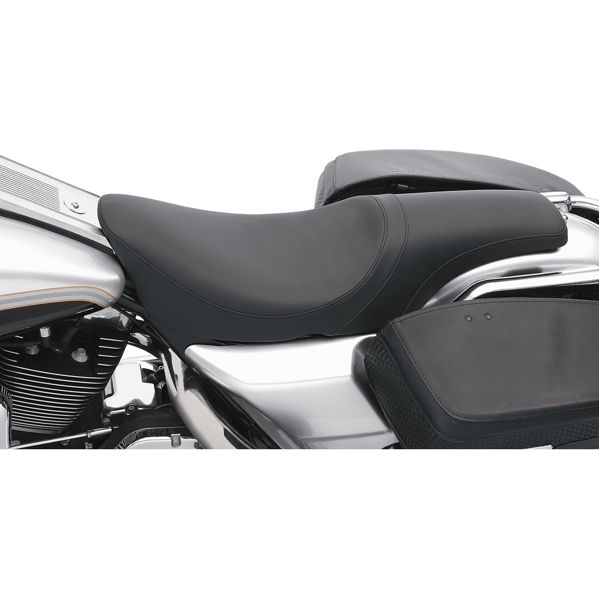 Solar-reflective leather in the seating area and automotive-grade vinyl on the sides; patented process reduces surface temperature by as much as 25°F for a cooler seat, this means higher durability and longer life over conventional leather or vinyl Custom-molded polyurethane foam interior for maximum comfort 3/16" ABS thermoformed seat base for a perfect fit Rubber bumpers and fully carpeted bottom to protect paint Fit all Drag and most H-D sissy bars 1" lower than stock (unless noted) Include all mounting hardware Made in the U.S.A.