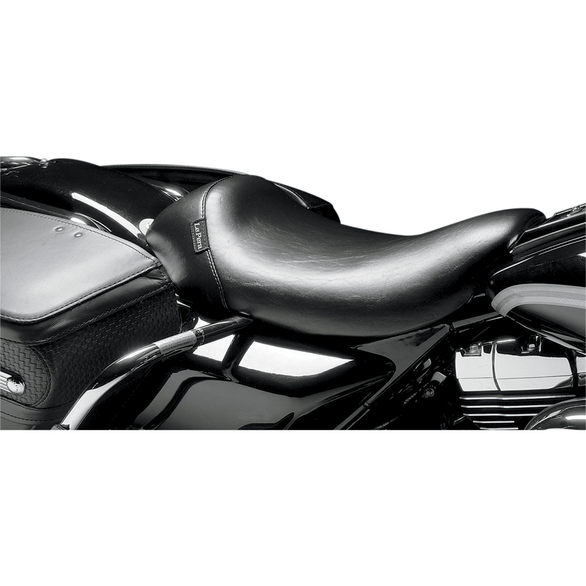 Simplistic style brings out the true expression of your custom or stock bike Top-grade black vinyl cover in your choice of a smooth or carbon fiber design Base plate is powder-coated steel and carpeted to protect painted surfaces Pillion pad sold separately Made in the U.S.A.