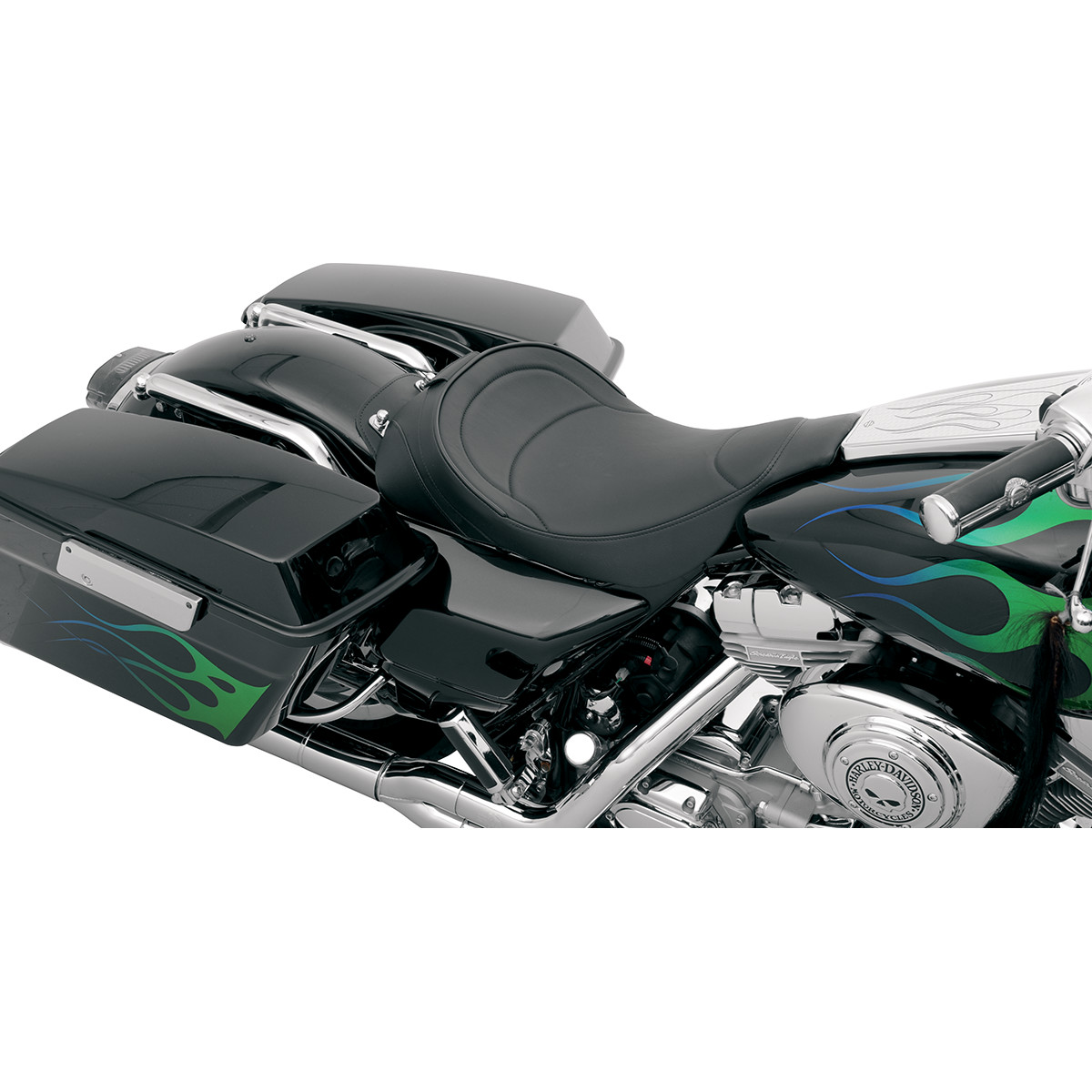 Solar-reflective leather in the seating area and automotive-grade vinyl on the sides; patented process reduces surface temperature by as much as 25°F for a cooler seat, higher durability and longer life over conventional leather or vinyl Flexible urethane foam interior for maximum comfort 3/16" ABS thermoformed seat base with carpeted bottom to protect paint Lower rider 1/2" from stock seat Made in the U.S.A.