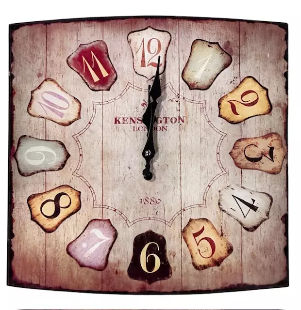 Seinäkello Kensington London. Vaalean, lasipintaisen kellon mitat 34 x 34 cm.