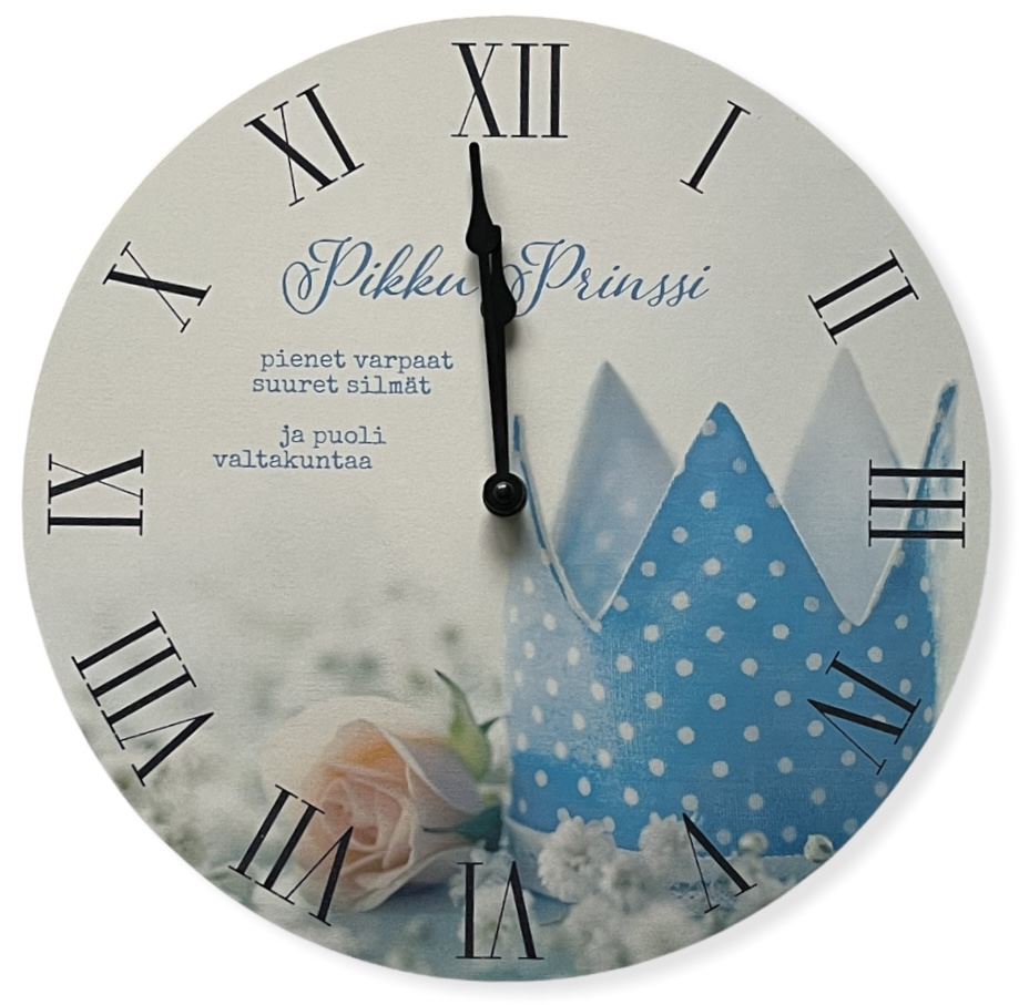 Seinäkello, Pikku Prinssi 30 cm. Kaunis seinäkello roomalaisin numeroin. Toimii yhdellä AA-paristolla.