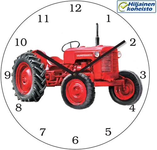 Seinäkello, jossa on Valmet 33 D. Tässä on nostalgiaa! Kellotaulun halkaisija 30 cm Kellotaulu lasia. Hiljainen, lähes äänetön koneisto toimii yhdellä AA-sormiparistolla (ei mukana) Kellolla vuoden takuu