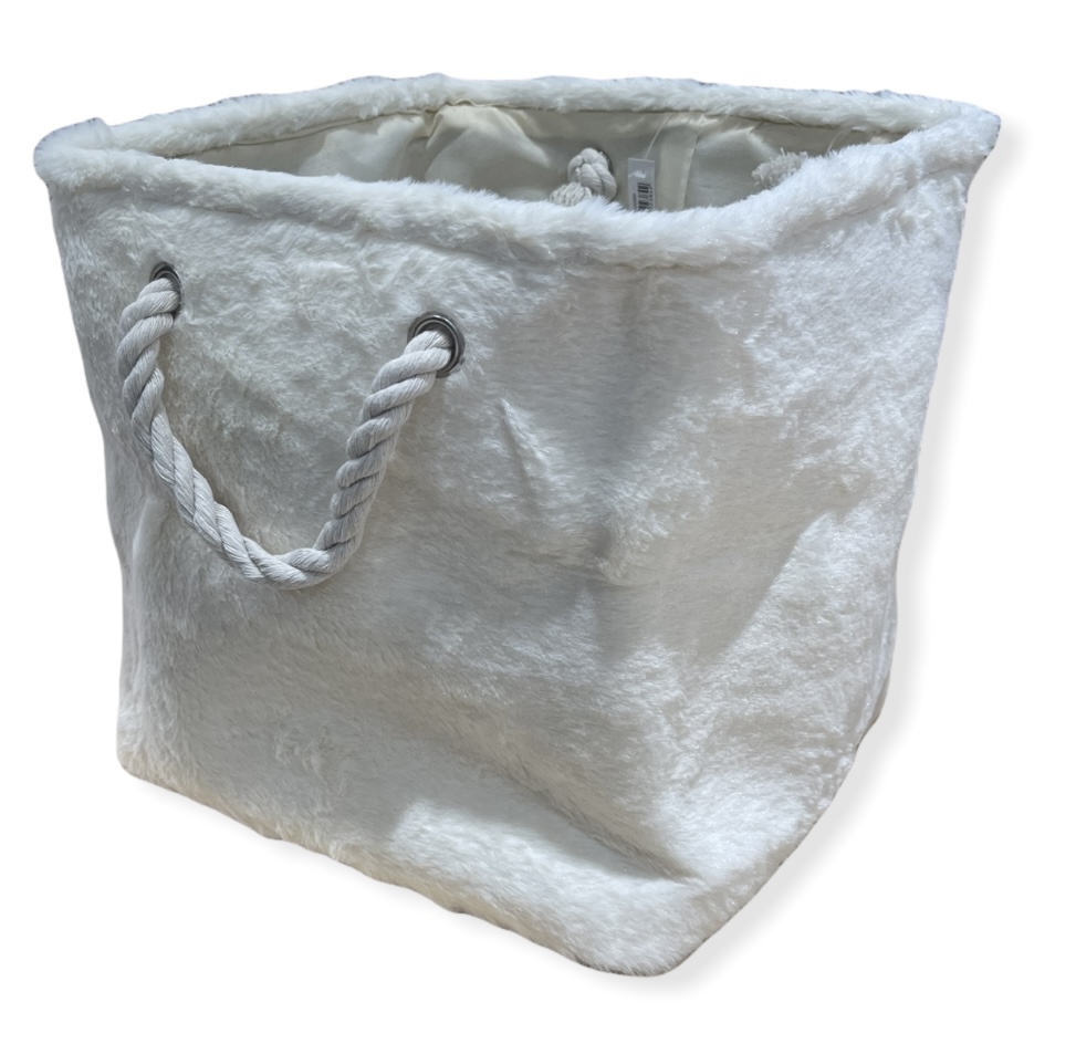 Sisustuskori neliö. Korin pohjan mitat 28 cm x 28 cm, korkeus 29 cm. Kantokahvoina paksut pehmeät köysipunokset.
