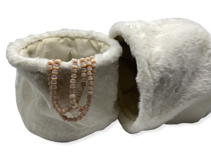 Sisustuskori Pörrö, pieni pyöreä valkoinen. Korissa kankainen ohut vuori. Pohjan halkaisija n. 20 cm ja korkeus n. 15 cm. Söpö yksityiskohta esim. kampauspöydälle tai kylpyhuoneeseen.