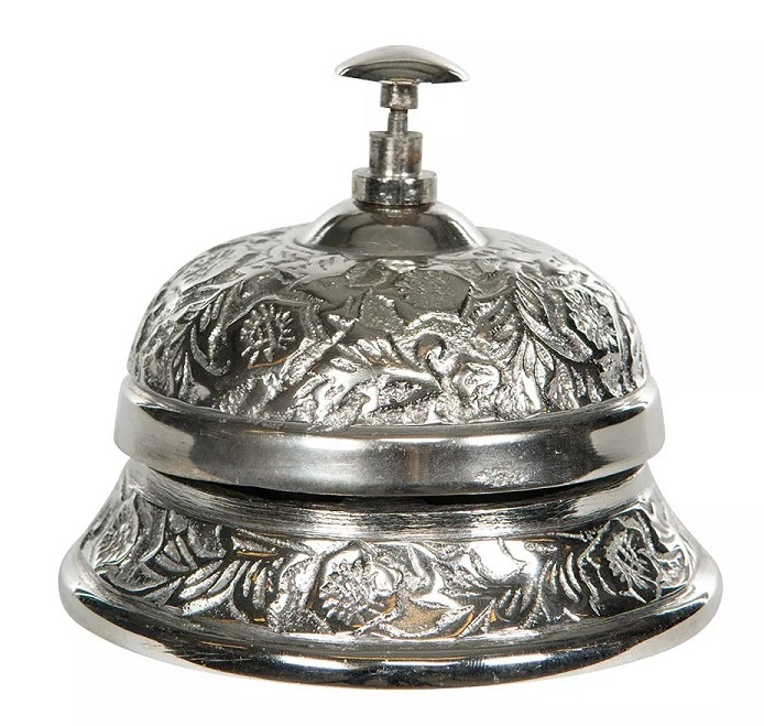 Soittokello antiikkihopea. A Lot Decoration. Tyylikäs soittokello baaritiskille, keittiöön, tai vaikkapa yöpöydälle. Metallisen kellon mitat 10 x 8,5 cm. Käsintehty.