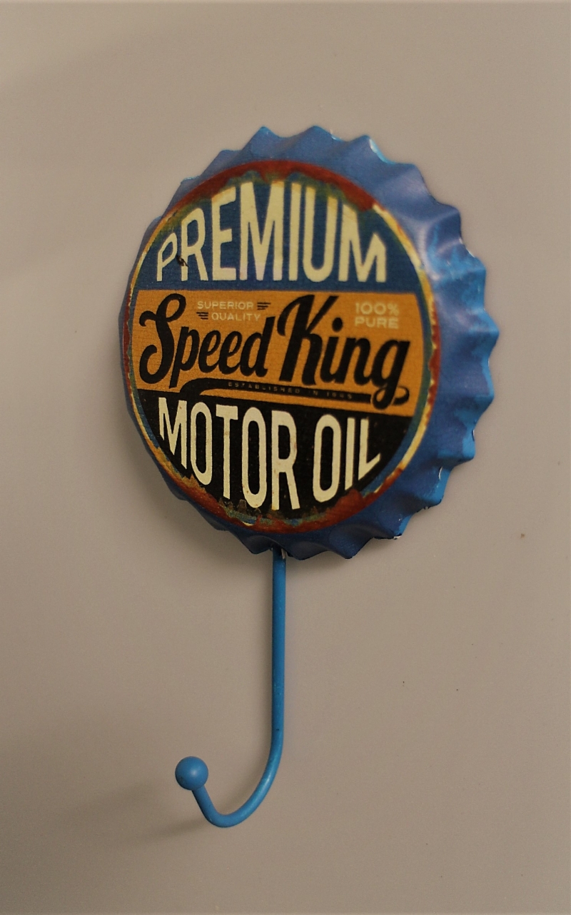 Speed King Motor Oil-seinäkoukku, metallia. Mitat 11,5 x 4 x 17,5 cm, paino n. 50 g.