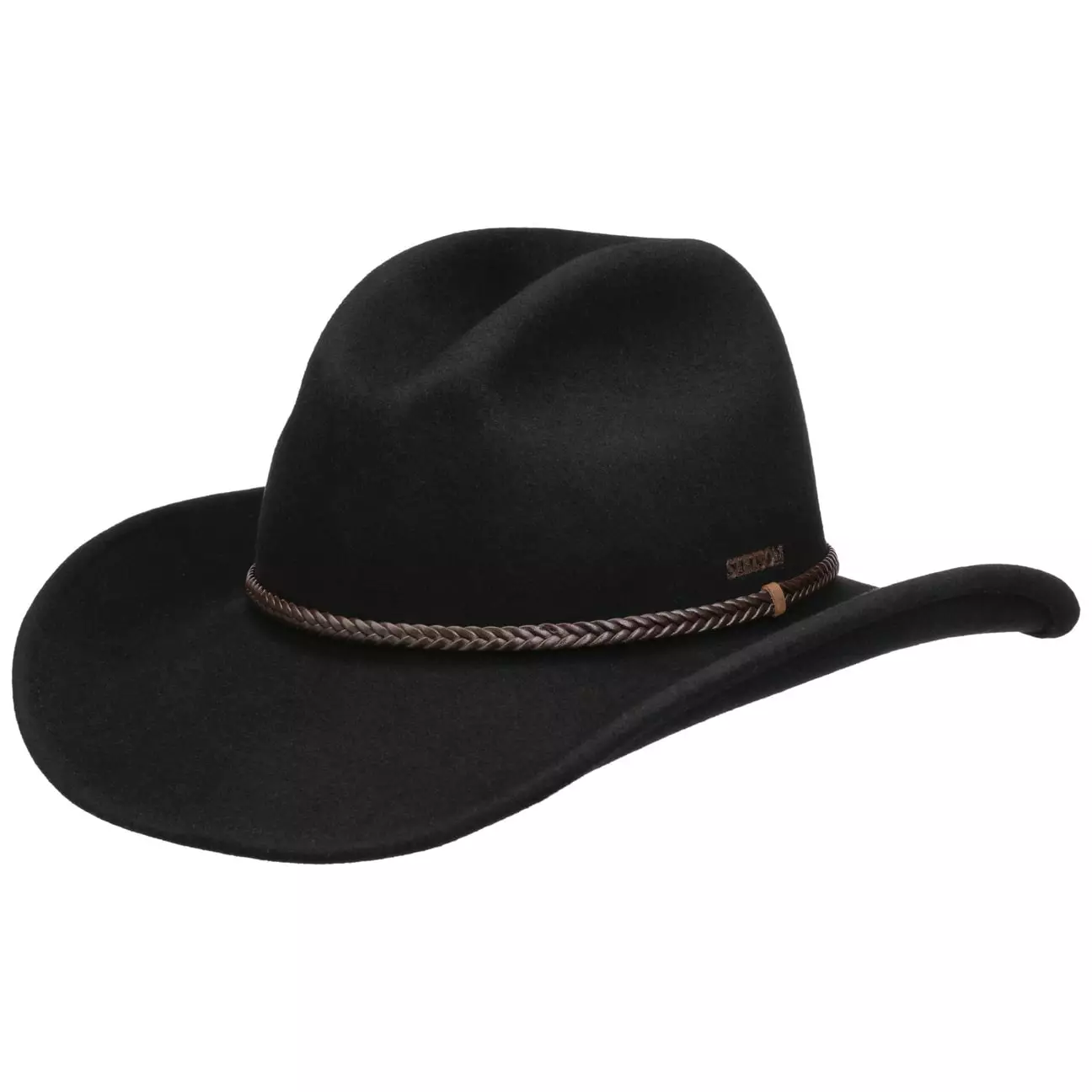Stetson Musta Western Woolfelt. Materiaali 100 % lampaan villaa, vuori 100 % puuvillaa.