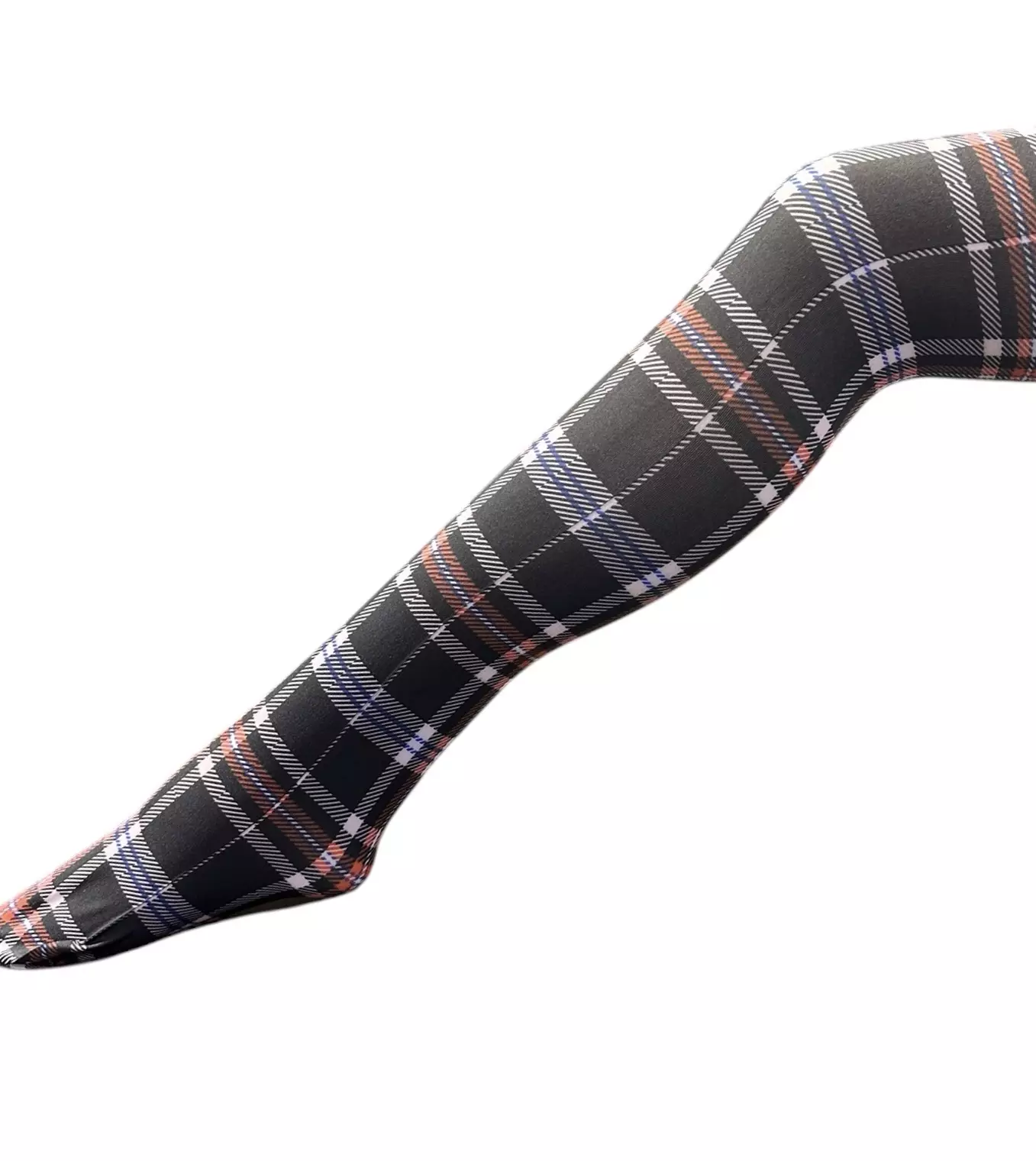 Sukkahousut musta skottiruutu. One Size Fits Most, yhdenkoon sukkahousut. Materiaali 94 % nailon, 6 % elastaani.