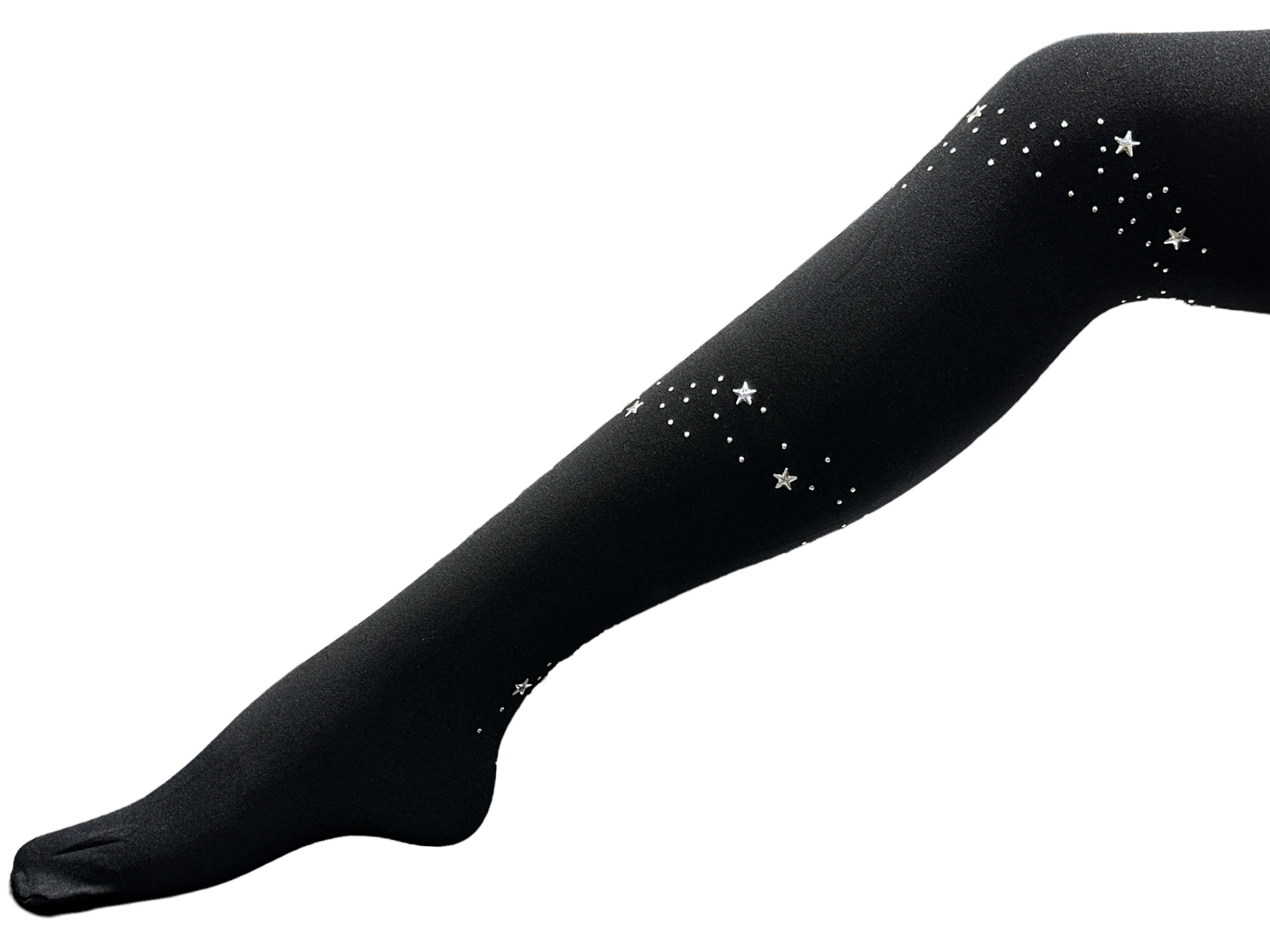 Sukkahousut tähtikoristein. Mustat sukkahousut kiiltävin tähtikoristein. Materiaali 94 % nailon, 6 % elastaani.