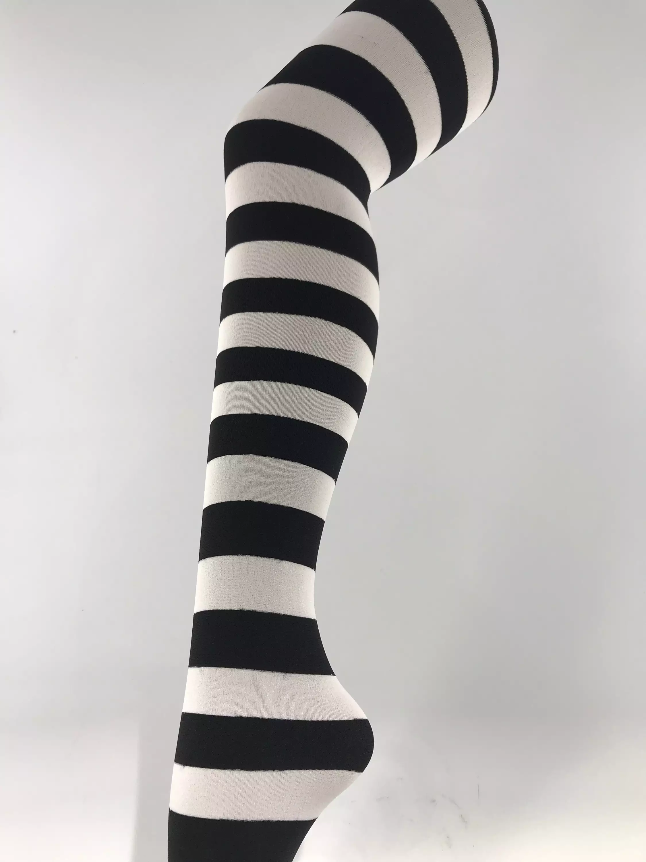 Sukkahousut, valkoraita. Yhdenkoon sukkahousut, valkomustaraidallinen. 70 denier, 100 % nylon.