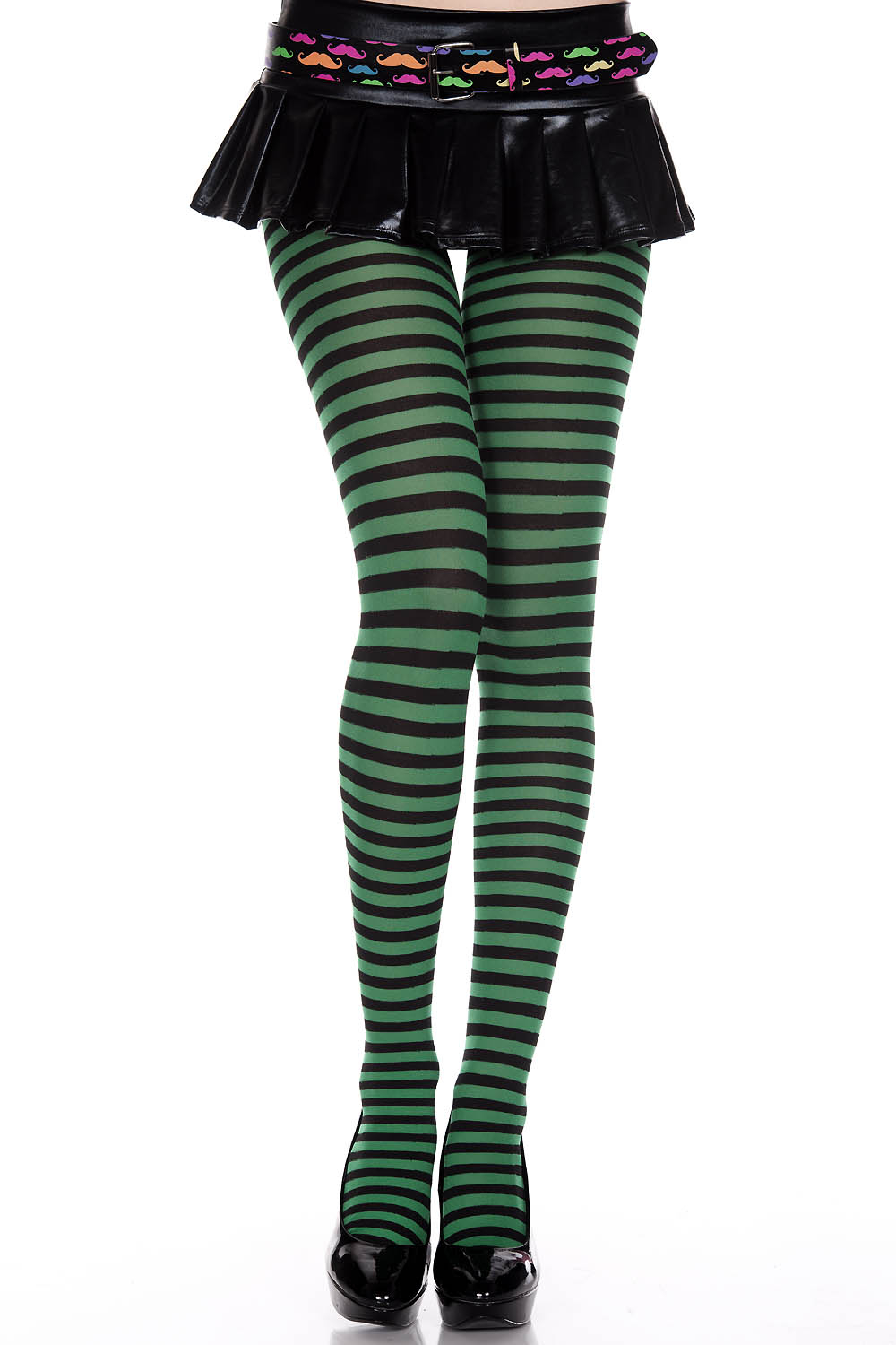 Sukkahousut, vihreä mustaraita. Tiheäraitaiset sukkahousut. Yhdenkoon sukkahousut, vihreämusta raidalliset. 70 denier, 100 % nylon.