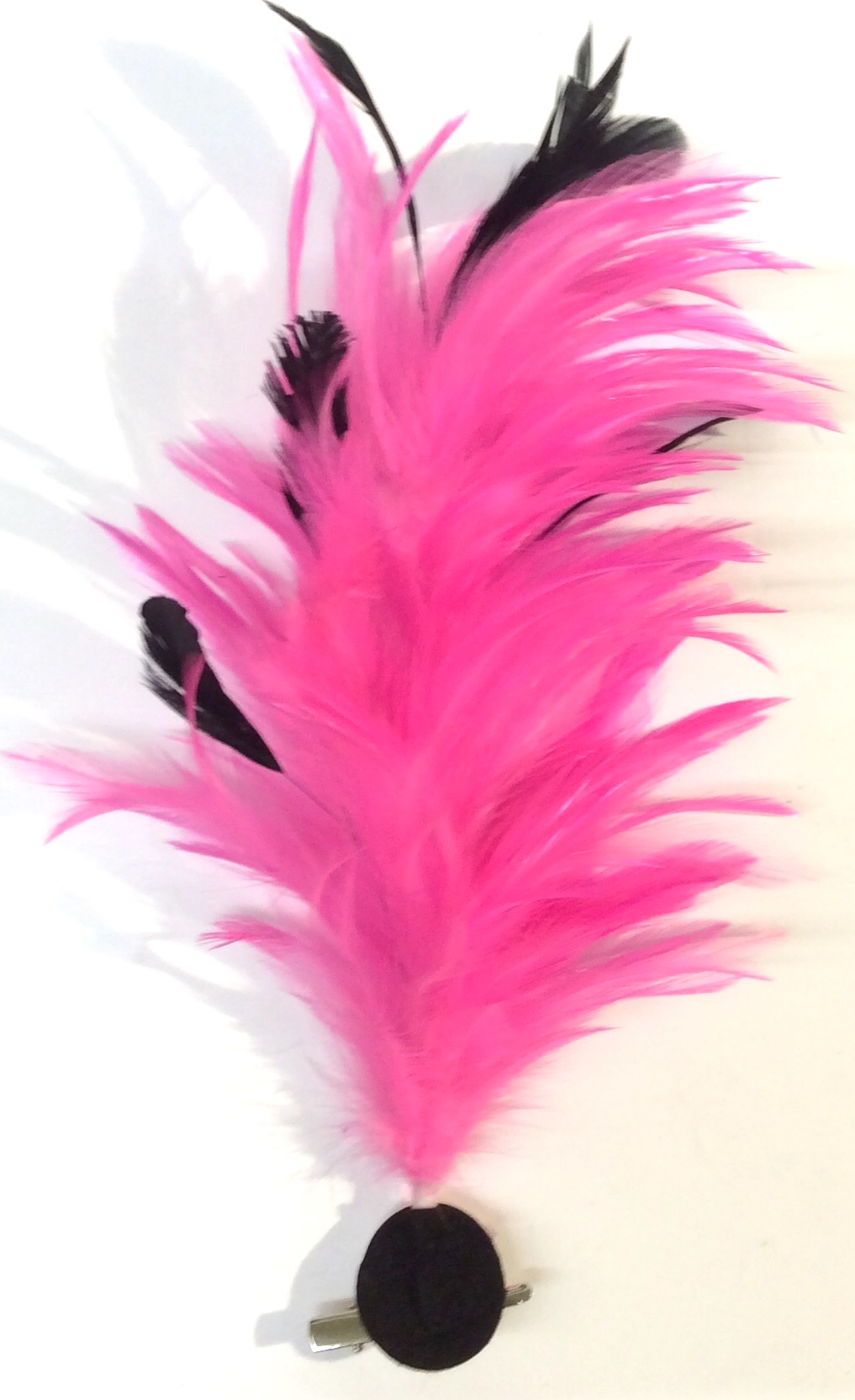 Sulka hiusklipsi/rintaneula, Vaalpunaine. Sulka hiusklipsi/rintaneula vaaleanpunainen. Hiusklipsin sisällä rautalanka, jonka avulla sulan saa muotoiltua suoraksi, pyöreän muotoiseksi, pään muodon mukaan.