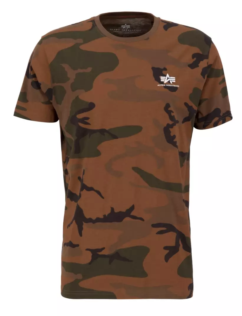 Alpha Burned Camo t-paita takaprintillä. Edessä vasemmassa rinnassa pieni logo. Materiaali 100 % puuvilla.