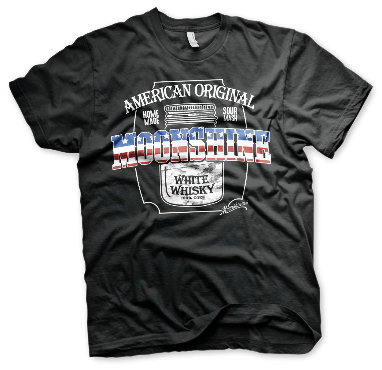 T-paita American Original Moonshiner, miesten malli. Reilun kokoinen, suosittelemme valitsemaan vähintään yhden koon pienemmän kuin normaalisti. Materiaali 100 % puuvilla.