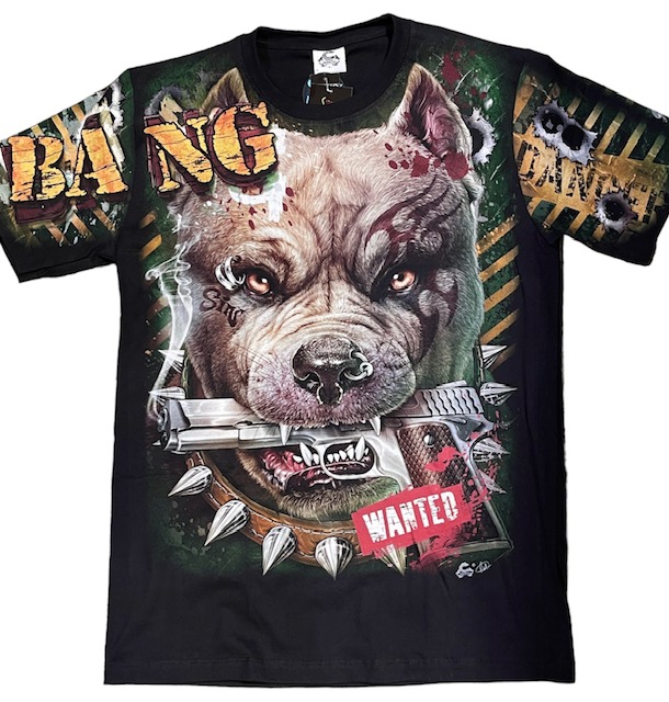 T-paita, Bloodhound & the Gun, musta. Iso printti sekä edessä että takana. Koiralla myös aito nenärengas, metallia. Materiaali 100 % puuvilla, hienopesu.