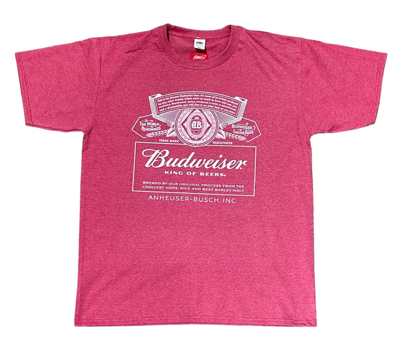 T-paita Budweiser Red-Heather valkoisella printillä. Meleerattu punainen.