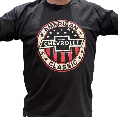 Chevrolet t-paita musta puuvillapaita. Edessä American Classic Chevy.