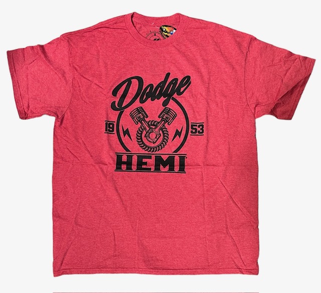 T-paita Dodge, meleerattu punainen. Värisävy voi vaihdella erästä riippuen. Printti edessä, materiaali 50 % puuvilla, 50 % polyesteri.