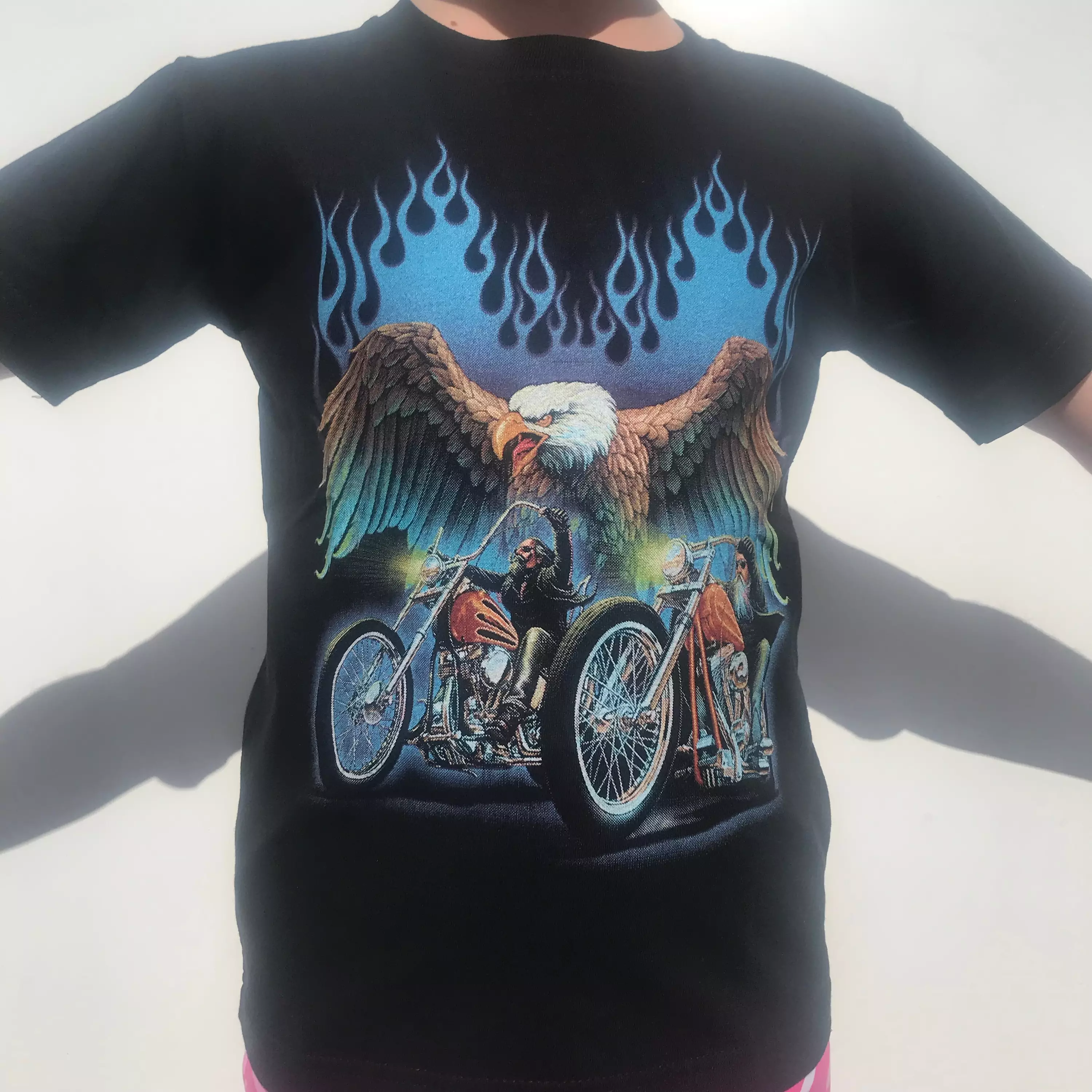 T-paita, Flaming Eagle. Lasten T-paita, jossa painatus edessä ja takana. Materiaali 100 % puuvilla, hienopesu.