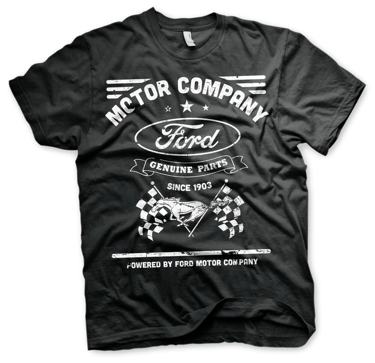 T-paita Ford Ruutulippu. Musta T-paita etuprintillä. Materiaali 100 % puuvilla.