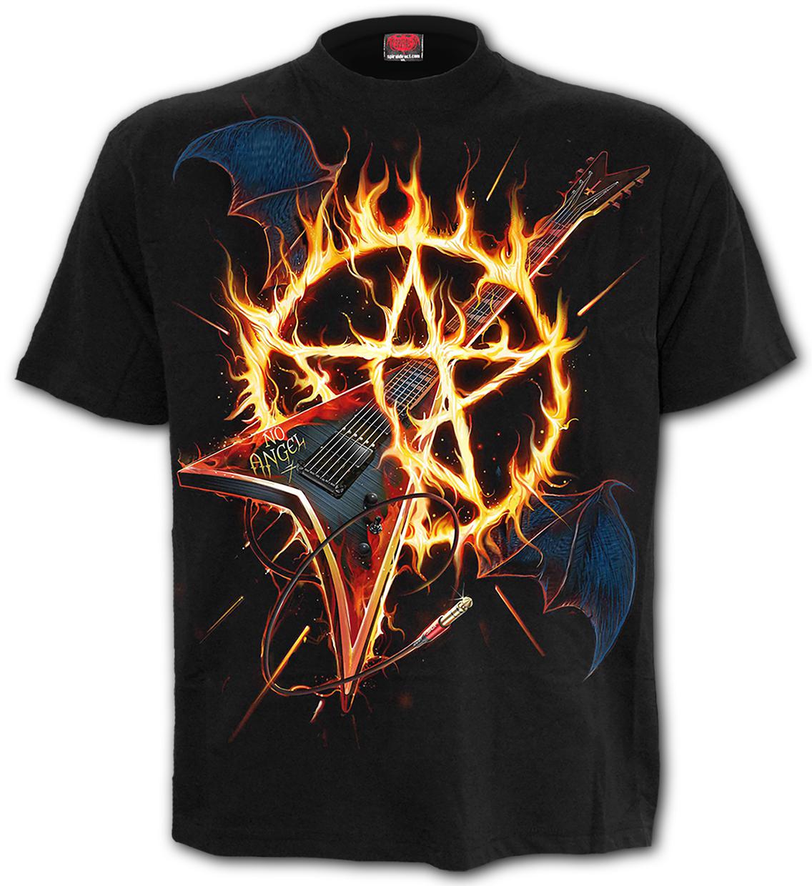 T-paita Hot Metal. Musta T-paita etuprintillä. Materiaali 100 % puuvilla.