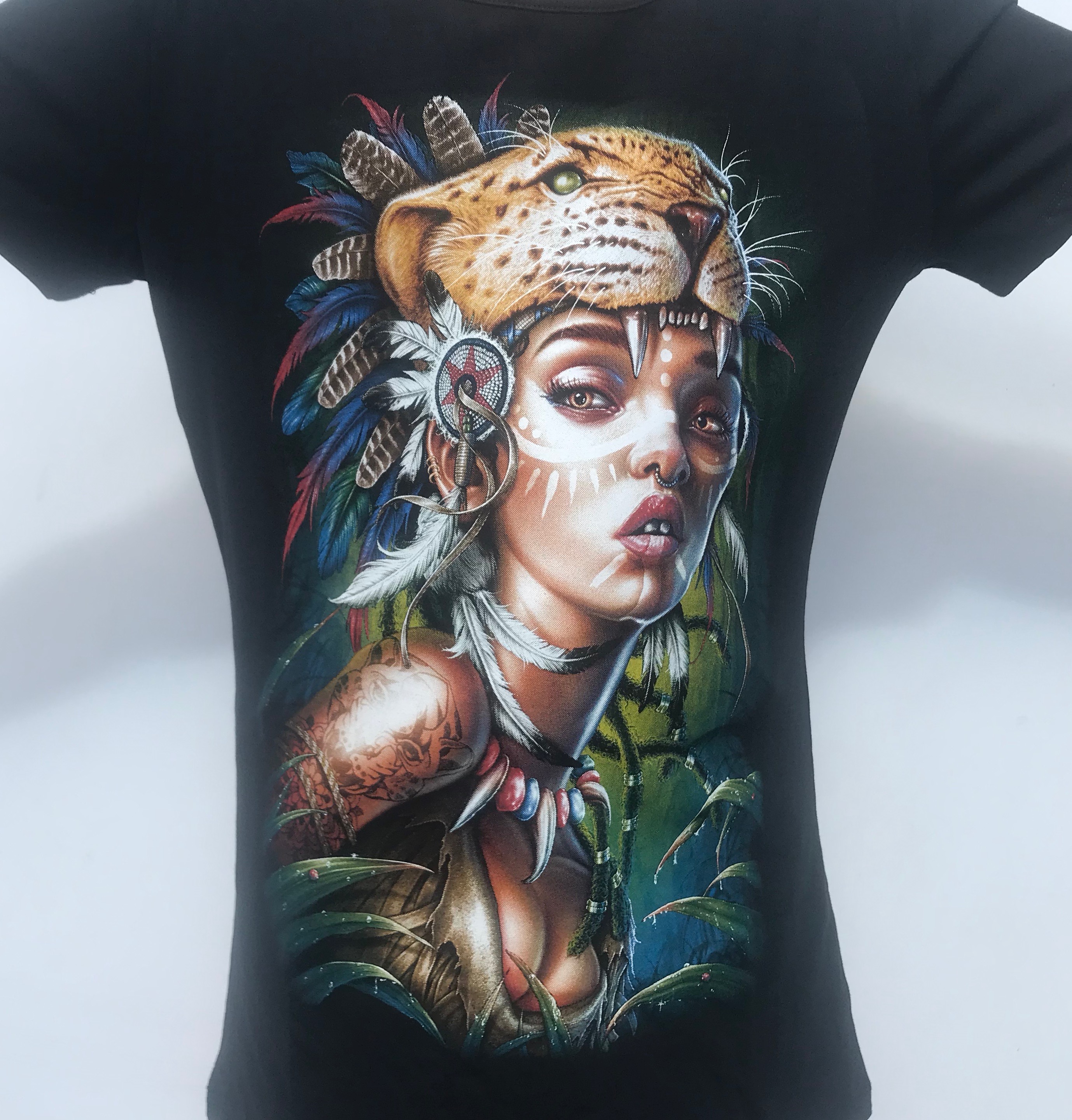 T-paita, Indian woman. Naisten T-paita, jossa edessä pimeässä hohtava painatus. Hienopesu.