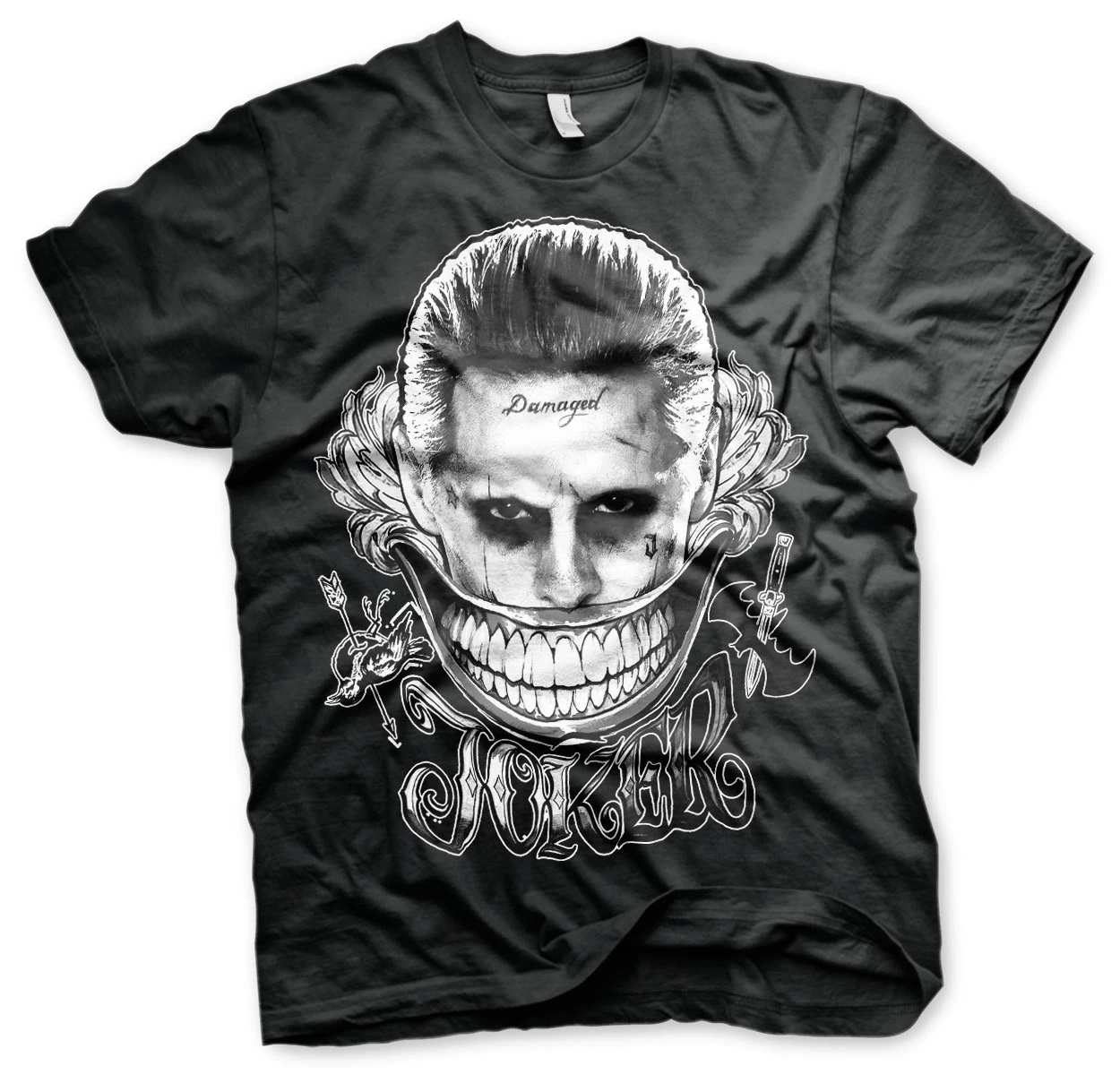 T-paita Joker, Damaged. Musta T-paita isolla etuprintillä.