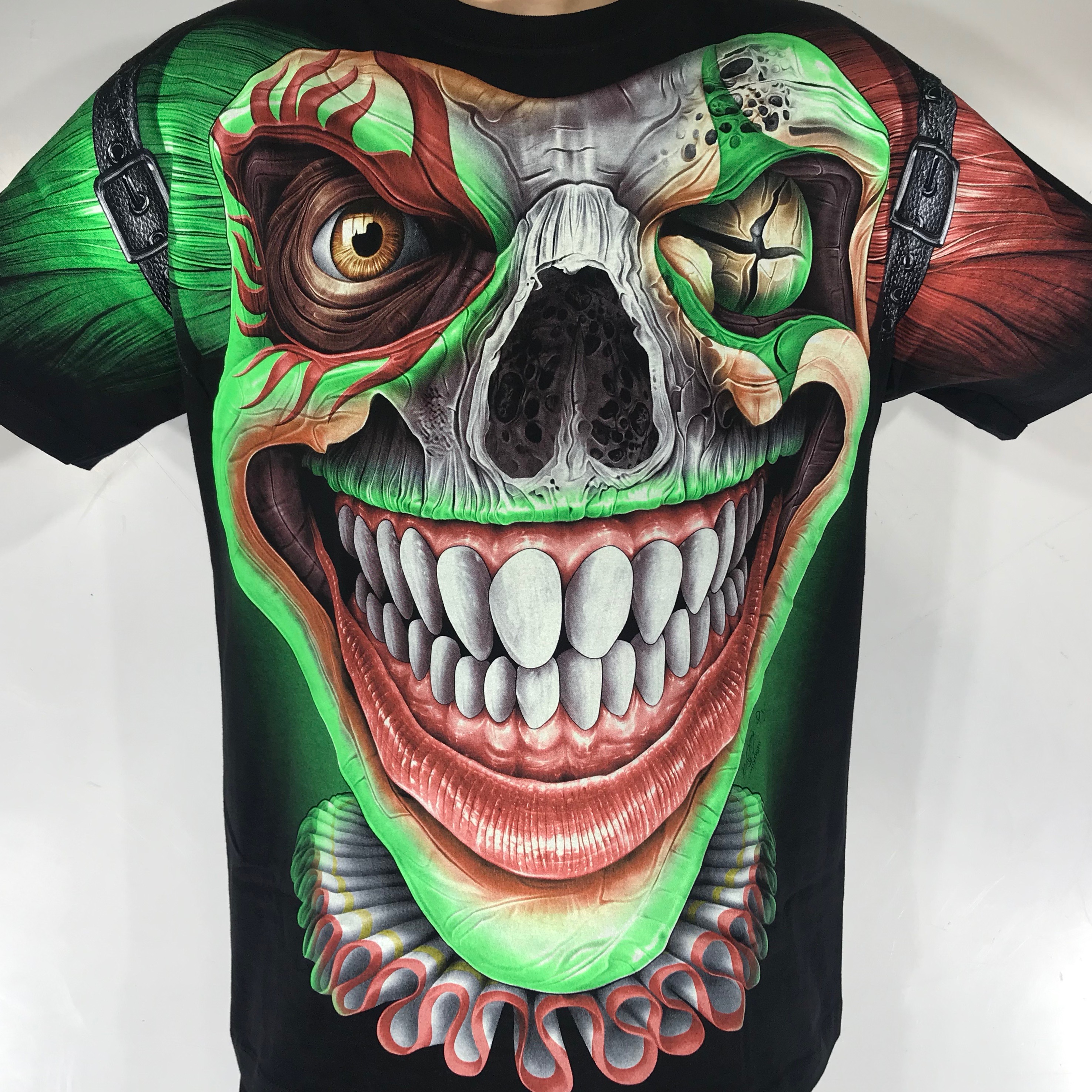 T-paita, Joker skull, Full HD glow. Miesten T-paita HURRRJAn makee, 4D-jumbopainatus Jokerin kallo, joka hohtaa pimeässä. Myös takana iso KARRRMEAn upea kuva ! T-paidan materiaali 100 % puuvilla, hienopesu.