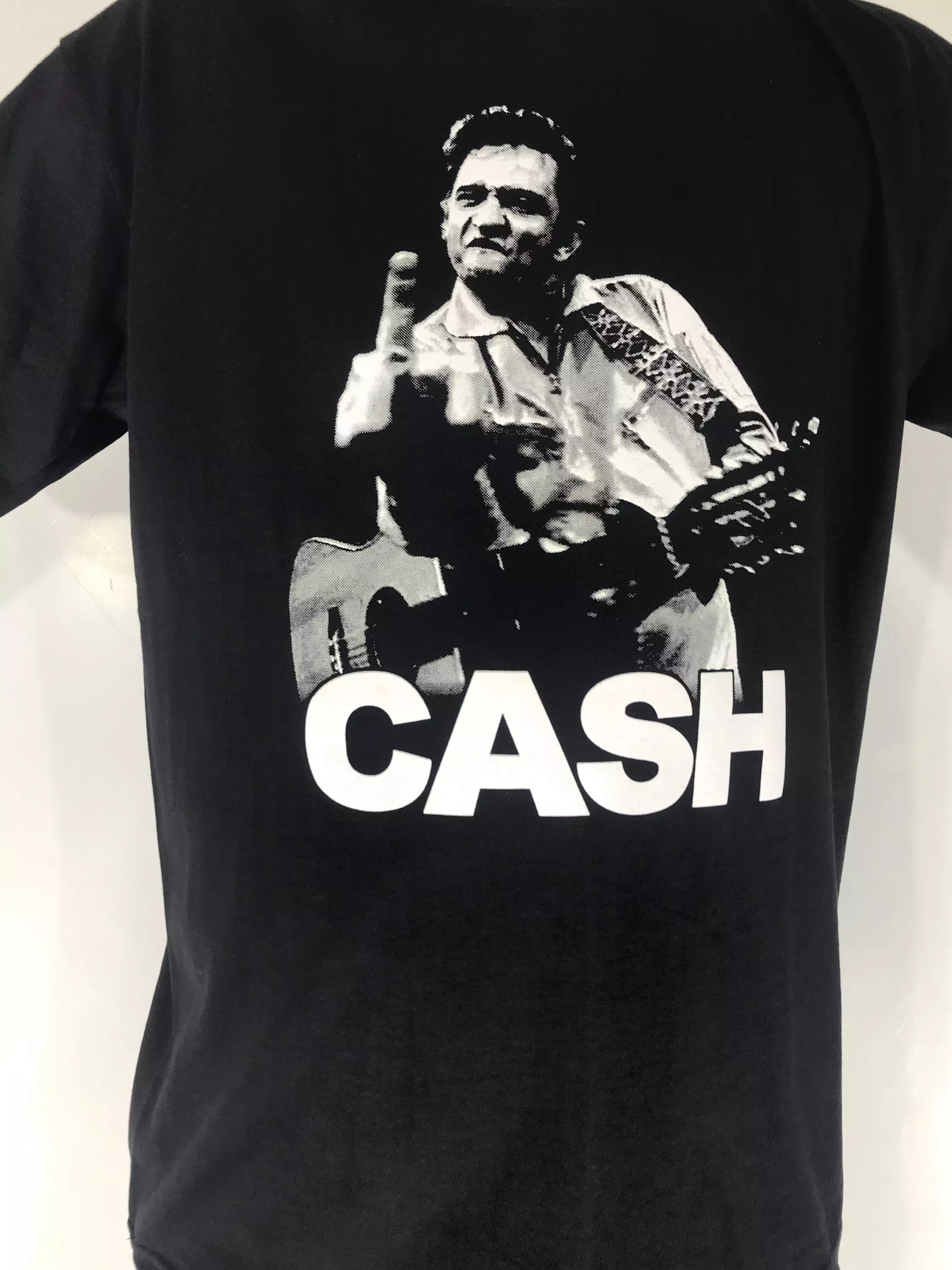 T-paita, kuvallinen Johnny Cash. Miesten mustavalkoinen Johnny Cash T-paita, jossa kuvapainatus edessä. Materiaali 100 % puuvillaa, hienopesu.