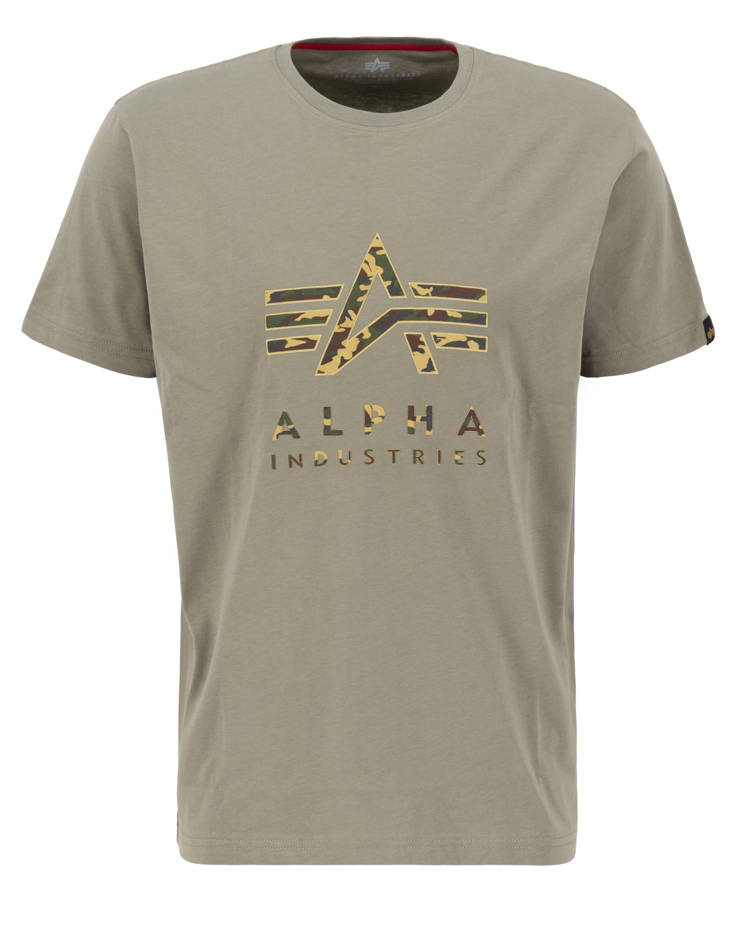 T-paita Oliivi, Camo printillä. Materiaali 100 % puuvilla.