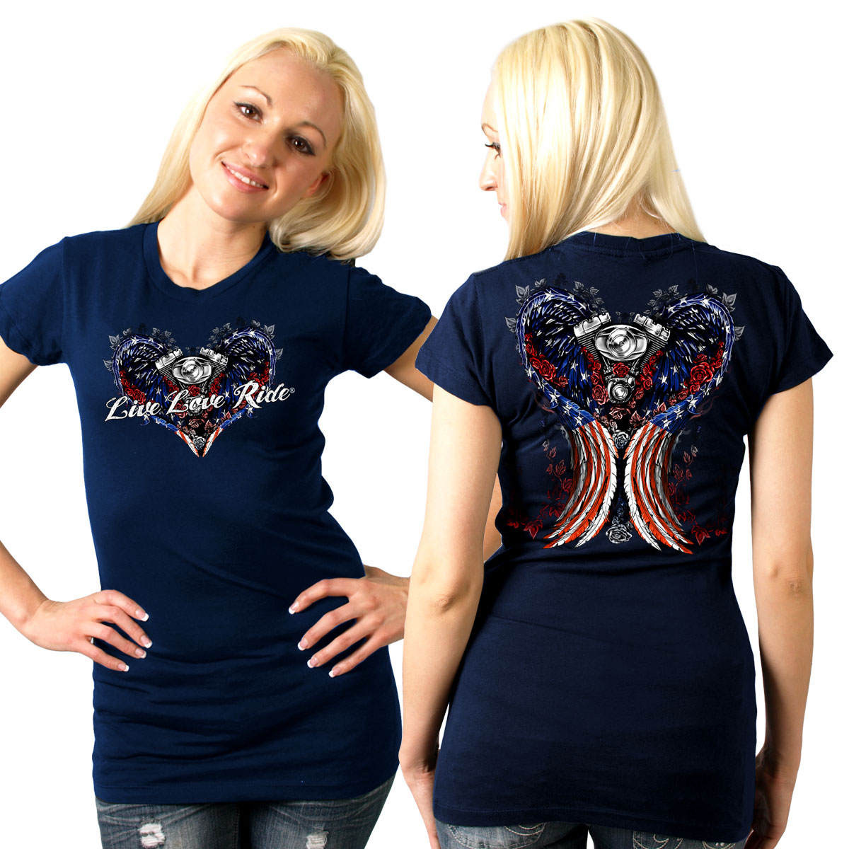 T-paita Patriotic Angel Wings. Sininen lyhythihainen T-paita, jossa painatukset edessä ja takana. Materiaali 100 % puuvillaa.