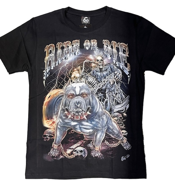 T-paita Ride or Die Bulldog, musta. Iso printti sekä edessä että takana. Materiaali 100 % puuvilla, hienopesu.
