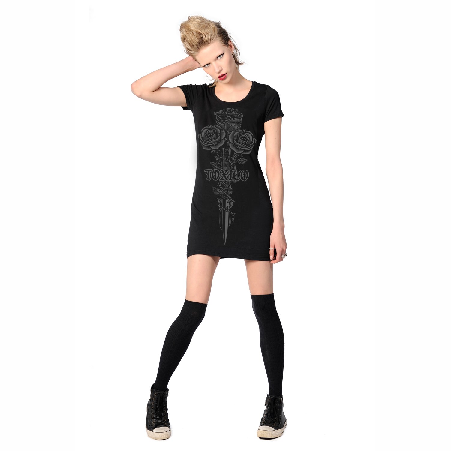 T-paita, Rose & Knife, Toxico. T-paita/tunika isolla etuprintillä. Materiaali 100 % puuvillaa.