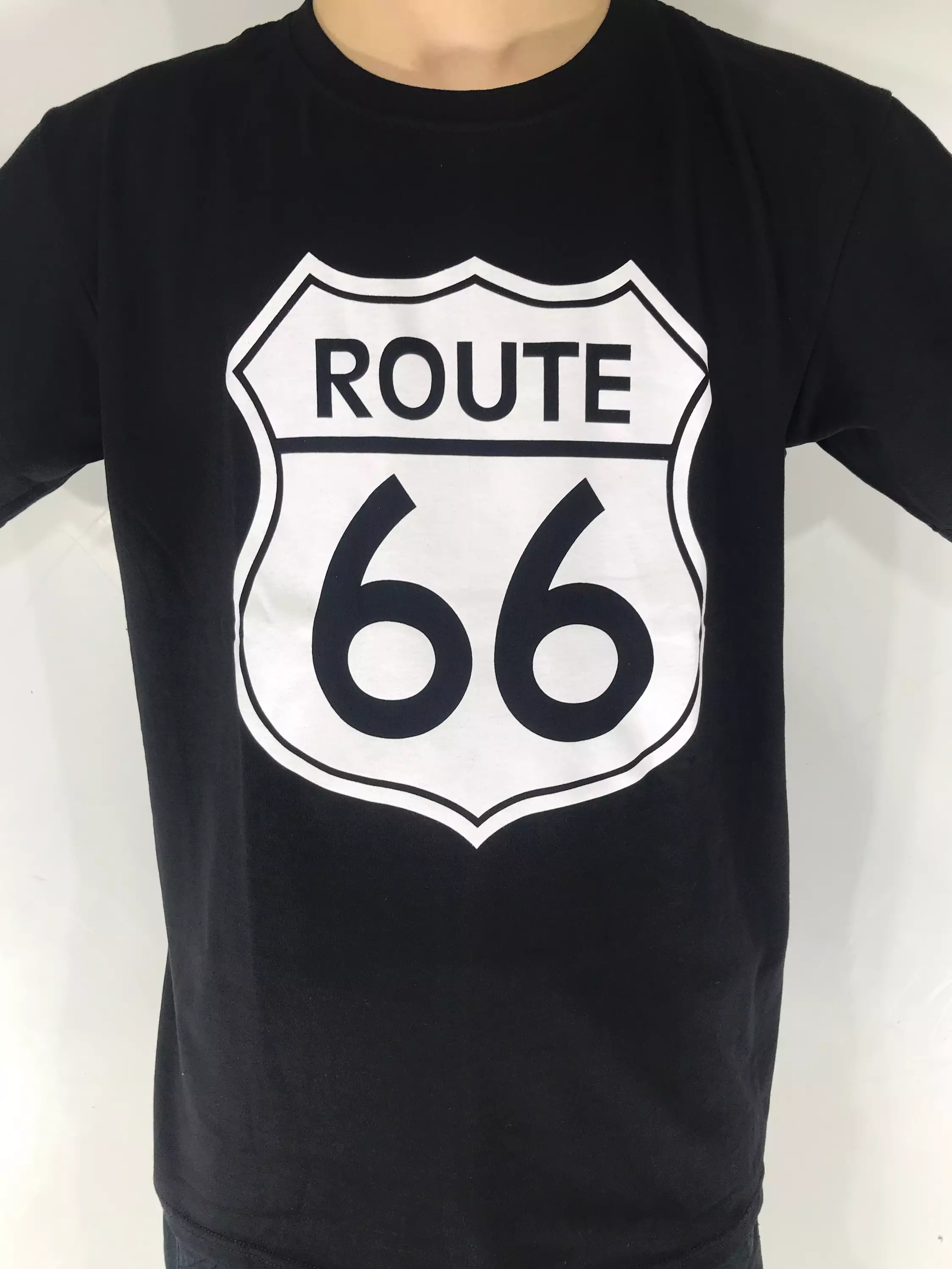 T-paita, Route 66. Miesten mustavalkoinen T-paita, jossa edessä Route 66-painatus. Materiaali 100 % puuvilla, hienopesu.