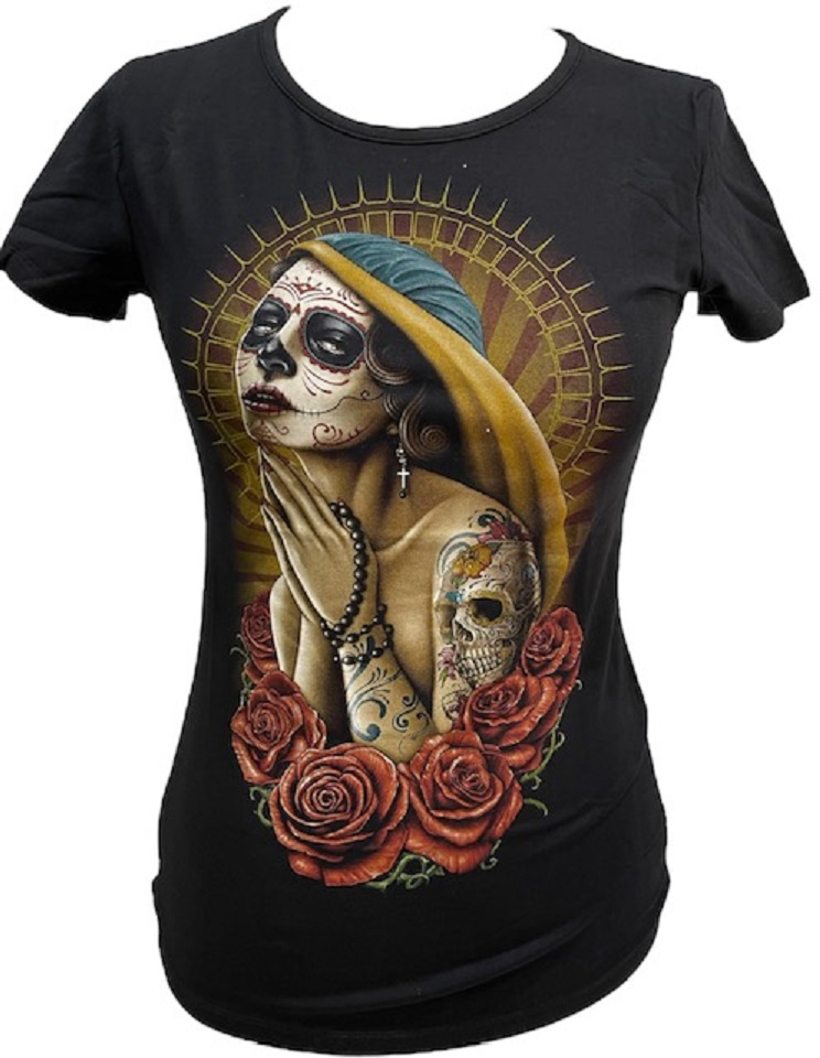 T-paita, Sugarskull Elegance. Naisten T-paita, jossa edessä iso printti. Hienopesu.