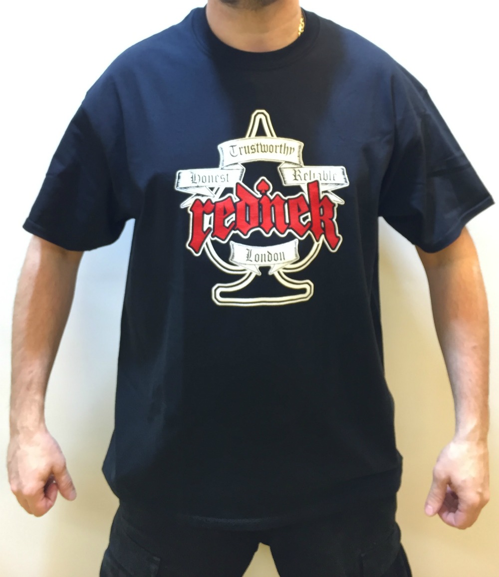 T-paita, Toxico, Rednek Honest . Toxicon musta T-paita, jossa painatus sekä rinnassa että niskassa. Paidan materiaali paksua ja pehmeää 100 % puuvillaa. Koko L on passeli tyypeille, joilla rinnanympärys on 107-112 cm ja koko XL taasen 127-132 cm rinnanympäryksen omaaville.