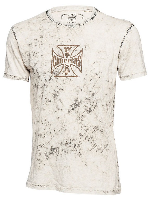 T-paita WCC, Chopper Dog. Beige T-paita, jonka etumuksessa painettuna WCC-logo ruskealla ja selässä on iso logo kuvapainatuksella. Materiaali 100 % puuvillaa.