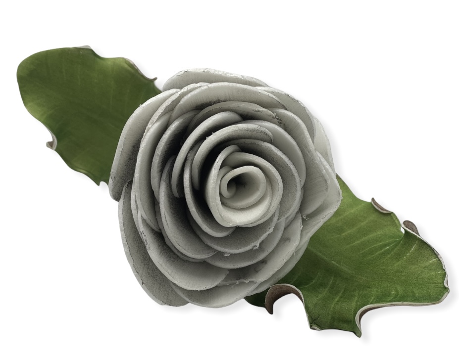 Tekokukka, vaalea harmaa. Foam-ruusu, jonka varsi ja lehdet ovat taivuteltavissa. Varren pituus n. 46 cm.