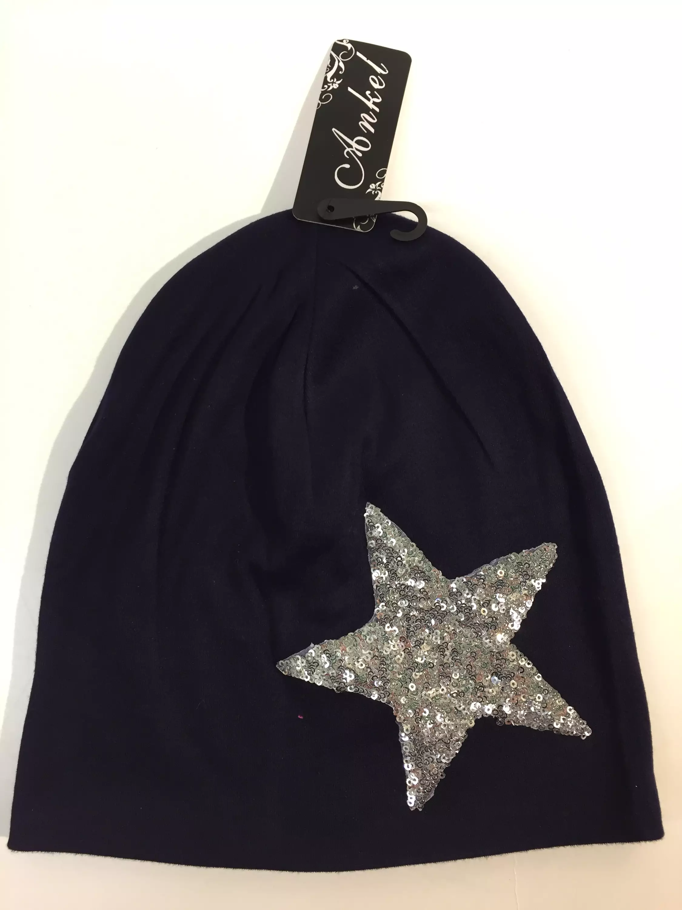 Trikoopipo, Tähti, tummansininen. Kaksinkertainen trikoopipo. Edessä paljettitähti. Pipon materiaali 50 % viskoosia ja 50 % puuvillaa. Suosittelemme pesua pesupussissa.