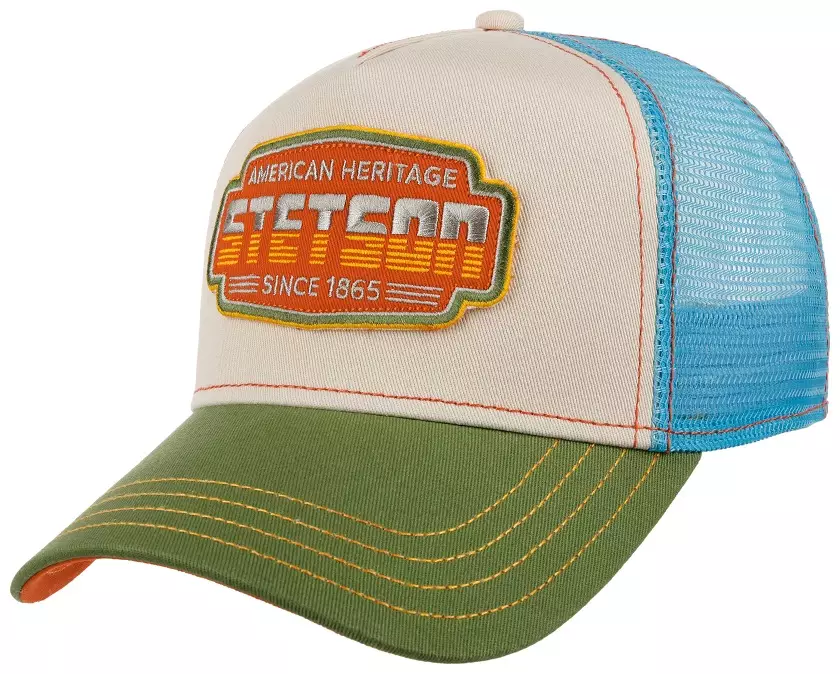 Lippis, Trucker Cap Lightning, green/light khaki. Takaa säädettävä Trucker lippis, säätö kattaa koot 55 - 61 cm eli S-XL. Lippiksen etuosa ja vuori 100 % puuvillaa. Takaosa ilmavaa, keltaista verkkokangasta, 100 % polyesteria.