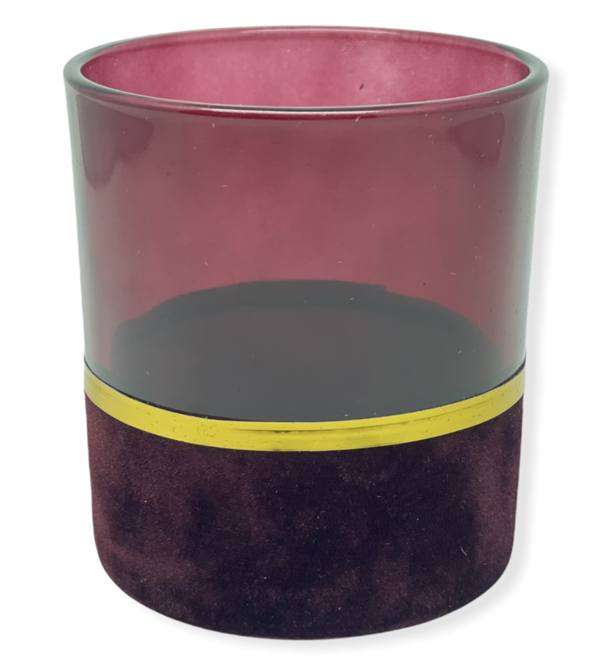 Tuikkukuppi Viininpunainen kultaraita. Kaunis, lasinen tuikkulasi, jonka alaosa on ylellistä samettia. Somisteena lisäksi kullanvärinen raita. Mitat: pohjan halkaisija 65 mm ja korkeus 80 mm.