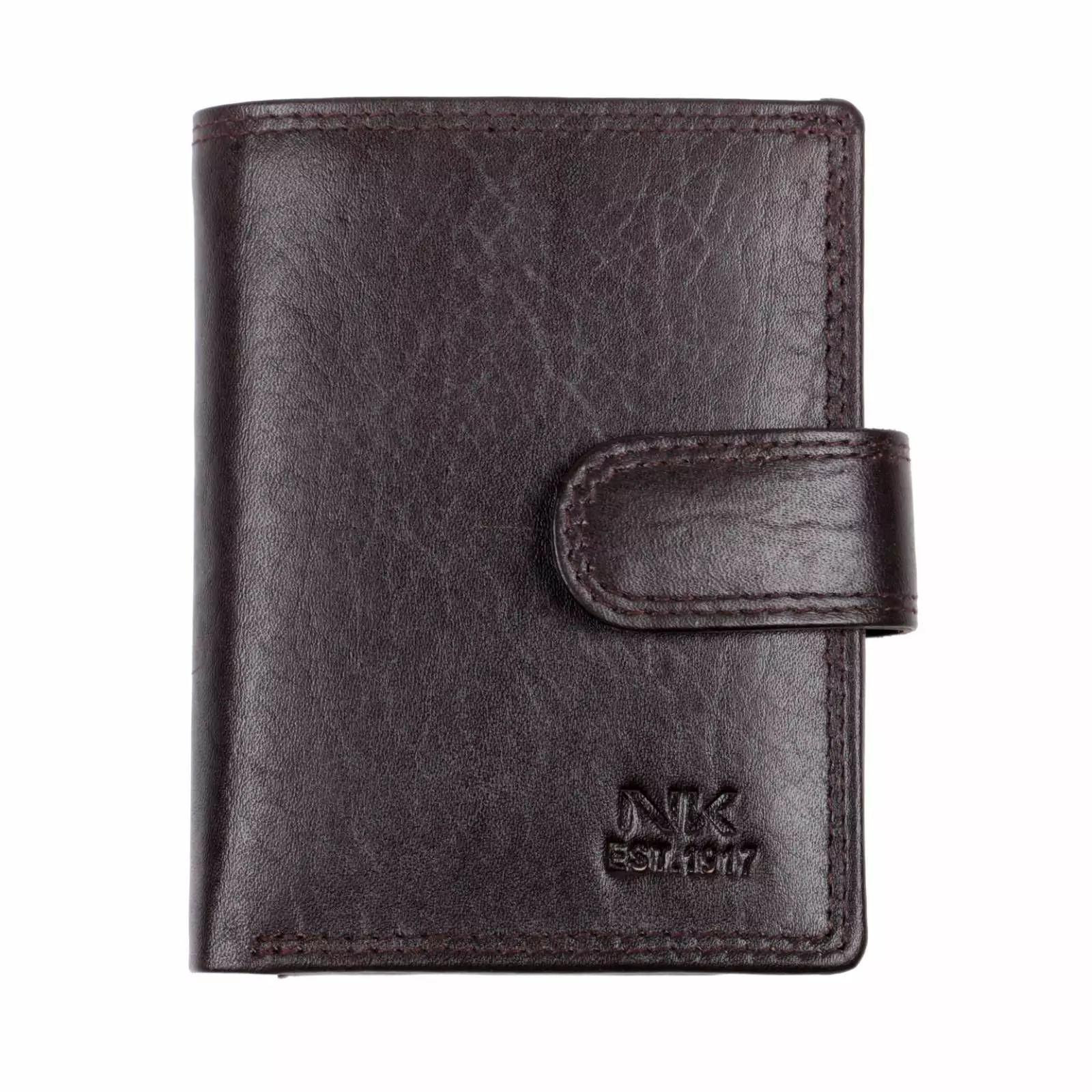 Tummanruskea, nahkainen pikkulompakko, jossa on popup korttikotelo. RFID-suojattu tuote.